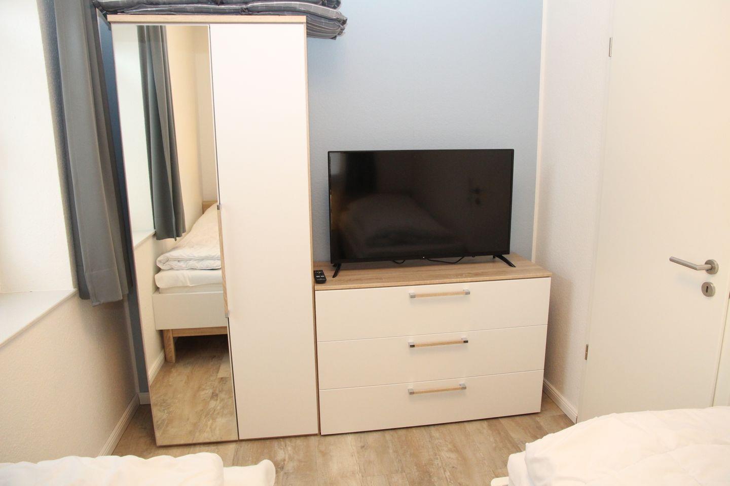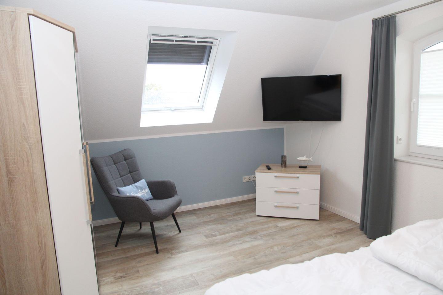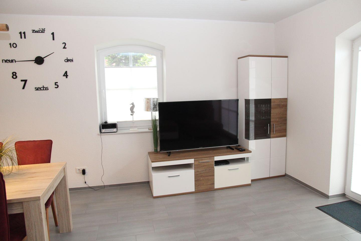 Im Wohnzimmer ist ein Flachbildfernseher mit 2 USB-Anschlüssen, Blu-ray und CD-Funktion sowie ein Radio für Sie aufgestellt. Vorhandene DVD's und Spiele dürfen Sie gerne nutzen.