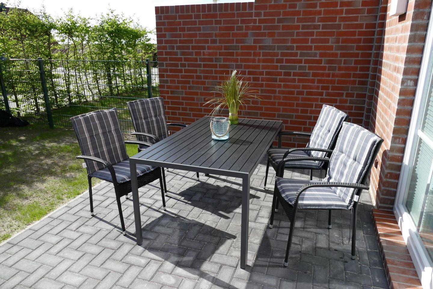 Der Garten ist komplett eingezäunt. Eine Hecke dient als Sichtschutz. Die sonnige Terrasse ist möbliert (für 6 Personen) und auf dem vorhandenen Grill können Sie sich leckere Speisen zubereiten.