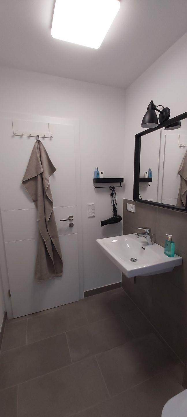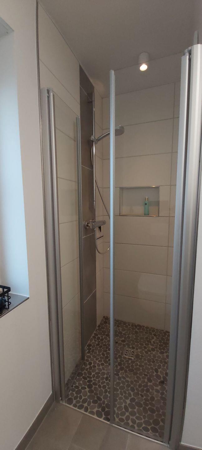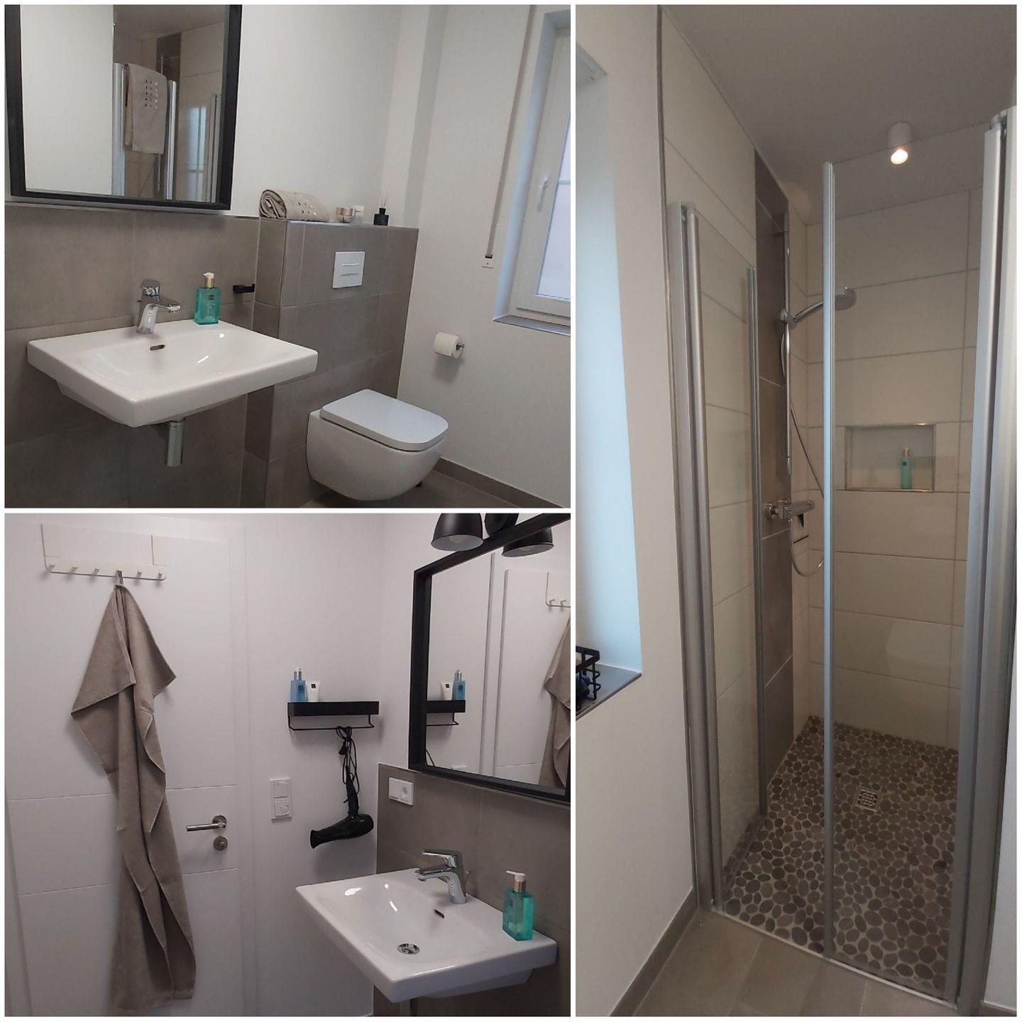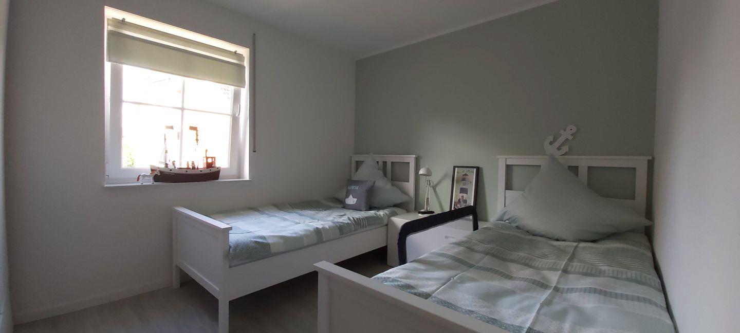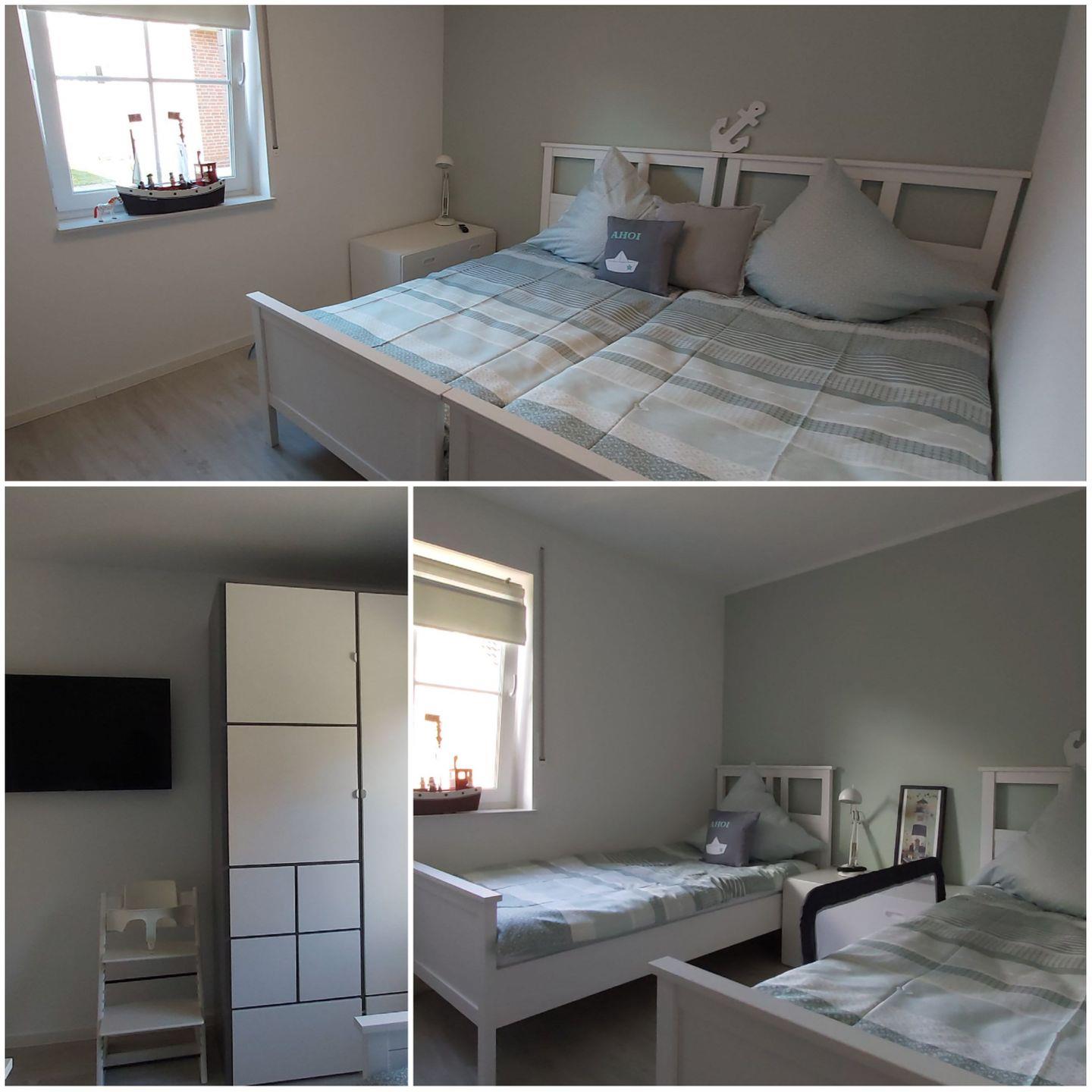 Rechts vom Eingang befindet sich ein separates Gäste-WC, daneben finden Sie ein Duschbad mit bodentiefer Dusche, Föhn und Fenster. Es folgt ein Schlafzimmer mit zwei separaten Betten, diese können aber auch zusammen gestellt werden. Ein großzügiger Schrank und ein an der Wand hängender Fernseher komplettieren das Zimmer. Für ein Bett ist ein Bettschutzgitter vorhanden, ein Hochstuhl steht ebenfalls für die kleinen Gäste bereit.