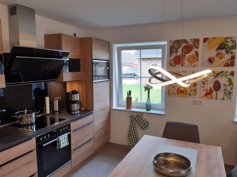 Die moderne Küche ist komplett und hochwertig ausgestattet (Backofen, Cerankochfeld, extragroßer Kühlschrank mit Gefrierfach, Geschirrspülmaschine, Mikrowelle, Philips-Senseo-Padmaschine, Filterkaffeemaschine, Wasserkocher, Toaster, Eierkocher, Teeservice u.v.m.).