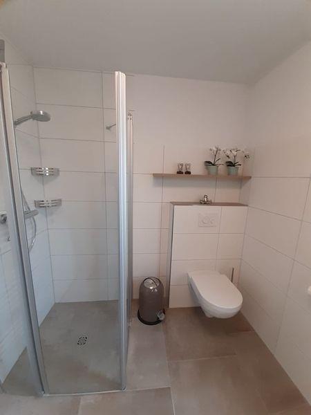 Sie finden eine zum Teil überdachte, möblierte Terrasse mit Sonnenschirm in Südlage vor, die zum morgendlichen Frühstück einlädt. Ein abschließbares Abstellhäuschen steht Ihnen für Ihre mitgebrachten Fahrräder zur Verfügung. Hier können E-Bikes geladen werden. Ein Fahrradverleih befindet sich an der nächsten Straßenecke. Zur Wohnung gehört ein PKW-Stellplatz.