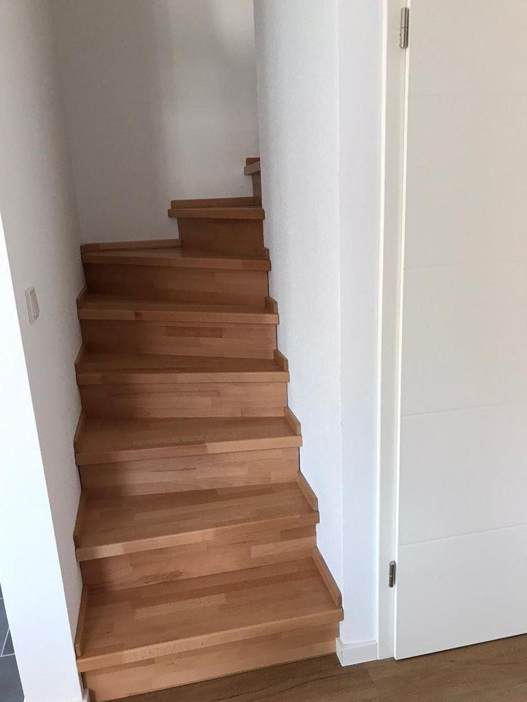Küche und Bad sind mit hochwertigen Fließen und die übrigen Bereiche mit Vinylboden in Holzoptik ausgestattet.