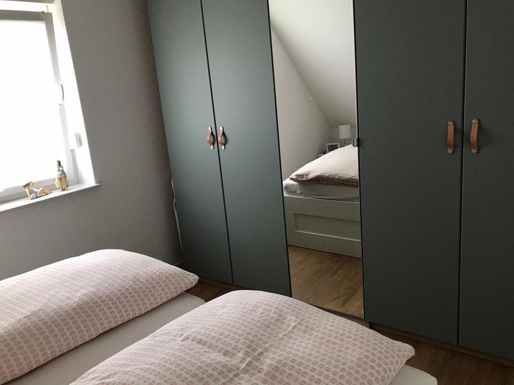 Die Wohnung verfügt darüber hinaus über ein Schlafzimmer mit Doppelbett und ein gemütliches Dachstudio mit zwei Einzelbetten, die bei Bedarf auch gerne zusammengeschoben werden können.