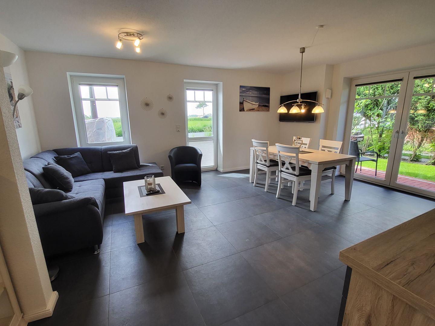 Die lichtdurchflutete Wohnung befindet sich abseits des Greetsieler Trubels in Neu-Hauen, das Zentrum von Greetsiel ist jedoch trotzdem fußläufig schnell zu erreichen.