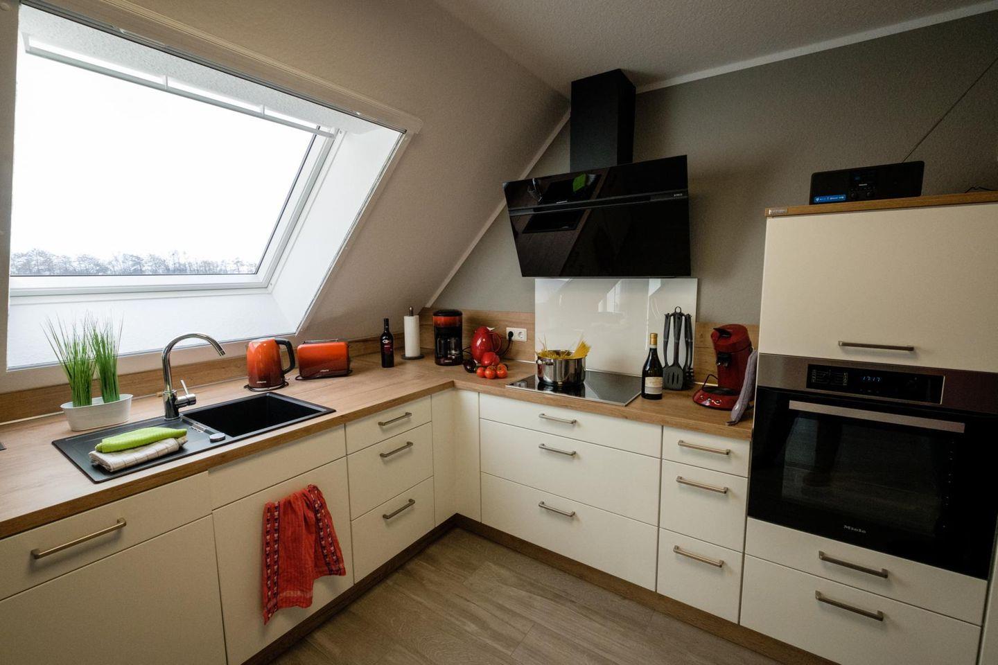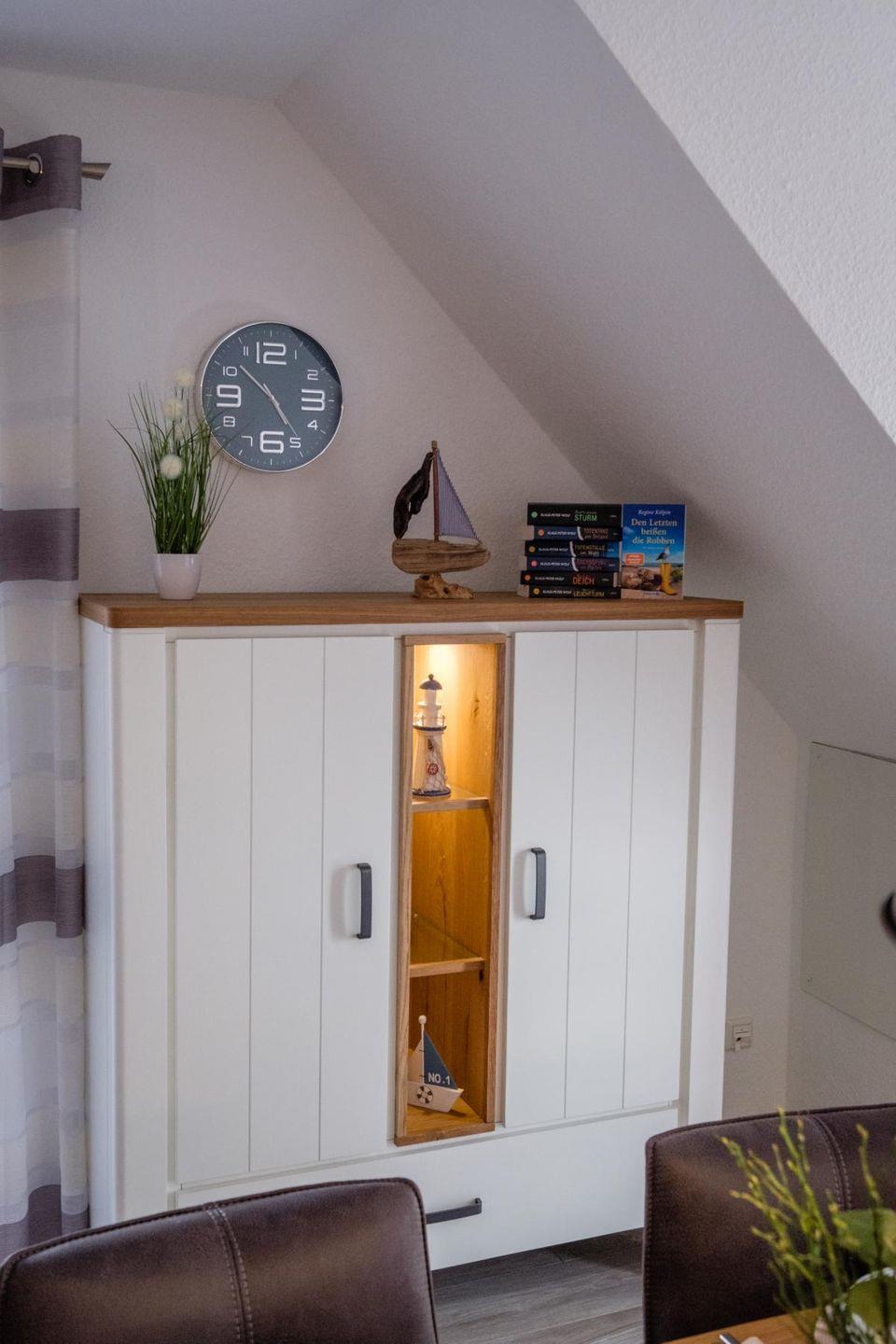 Möchten Sie den Tag mit einem ausgiebigen Brunch starten, oder am Abend ein Festmahl zaubern? Dann bietet Ihnen die vollausgestattete Küche mit u.a. Ceran-Kochfeld, Backofen, Dunstabzugshaube, Kühlschrank, Gefrierschrank, Spülmaschine, Kaffeemaschine, Senseo-Padmaschine, Wasserkocher, Mikrowelle, Toaster, Mixer und Pürierstab alle Möglichkeiten. Ein ostfriesisches Teegedeck rundet die Ausstattung ab. Das Internetradio sorgt für zusätzliche Unterhaltung beim Kochen.