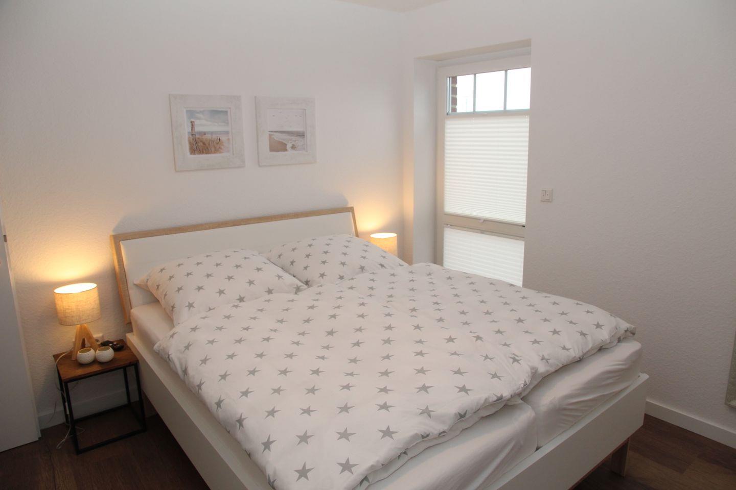 Sie verfügt über 2 Schlafzimmer mit jeweils einem Doppelbett Kleiderschrank. Die Fußböden sind mit einem Vinylboden in Holzoptik ausgestattet und verfügen über eine angenehme Fußbodenheizung. Die Fenster lassen sich alle abdunkeln, in jedem Schlafzimmer befindet sich ein Smart-TV.