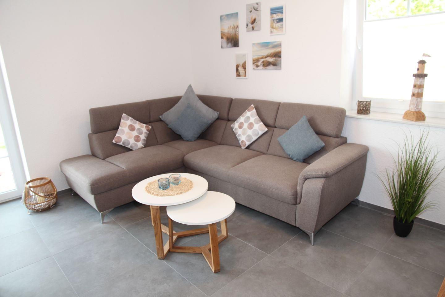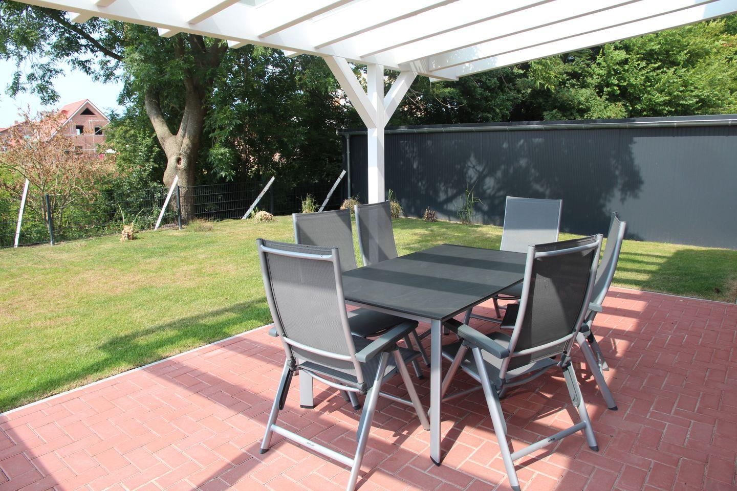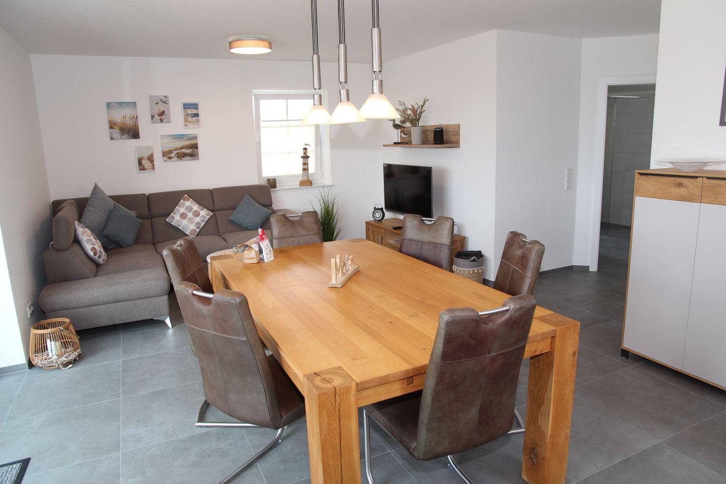 Sie betreten dieses wunderschöne Haus direkt über den Flur mit maritimer Garderobe und landen dann in der gut bestückten Küche im offenem Wohn- und Essbereich. Die Küche verfügt u.a. über Spülmaschine, Kühlschrank mit Gefrierfach, Backofen, Cerankochfeld, Toaster, Wasserkocher, Kaffeemaschine und Senseo-Padmaschine. Direkt angrenzend befindet sich der Esstisch mit sechs Stühlen und das gemütliche L-Sofa mit Blick auf den großen Flachbildfernseher. Von hier können Sie auch direkt auf die möblierte und überdachte (mit Windschutz) Terrasse mit angrenzendem Garten hinaustreten. Der Garten ist teilweise eingezäunt.