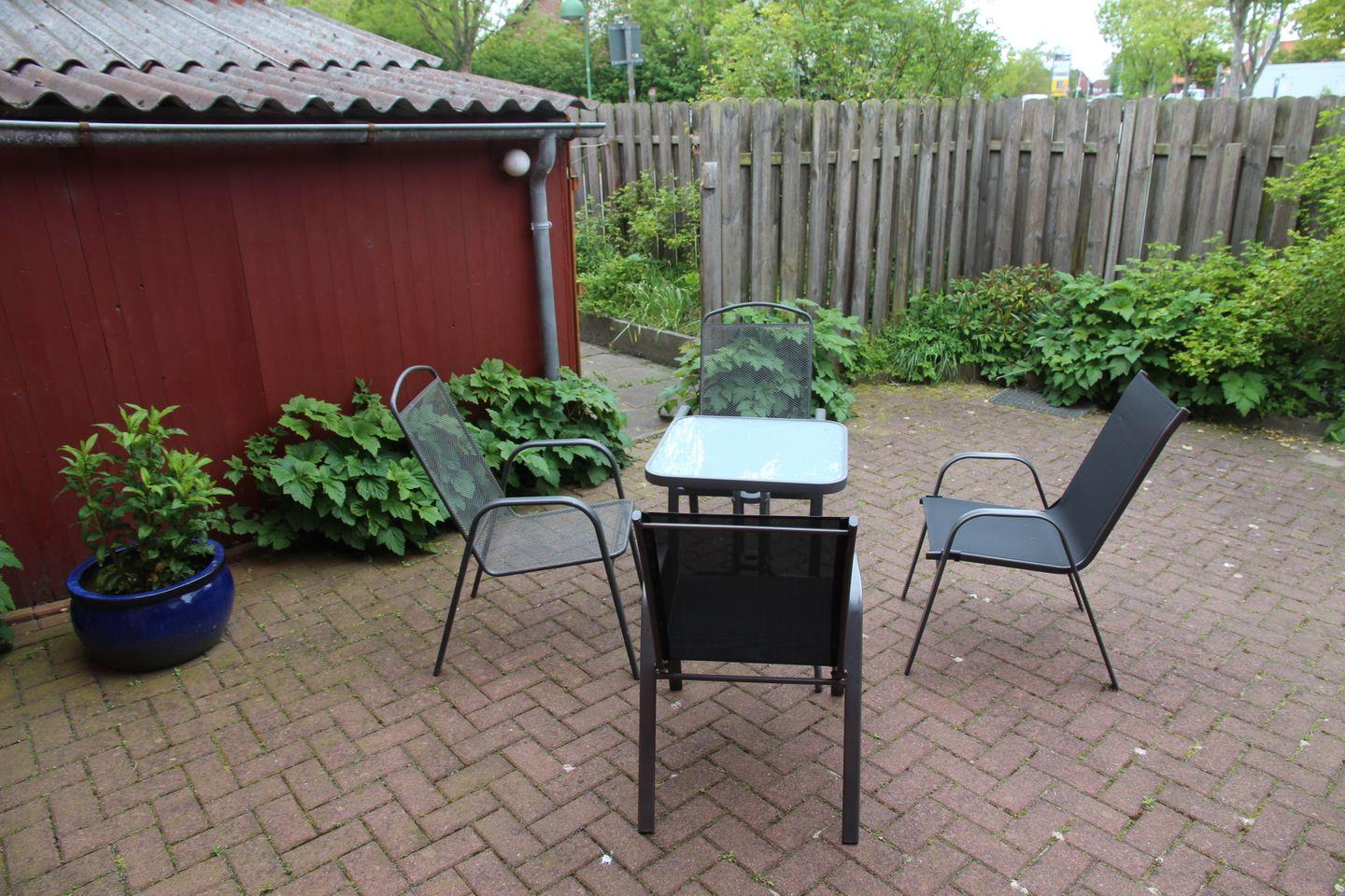 Ein kleiner, voll eingezäunter Garten mit möblierter Terrasse gehört ebenfalls zu dieser Wohnung hinzu.