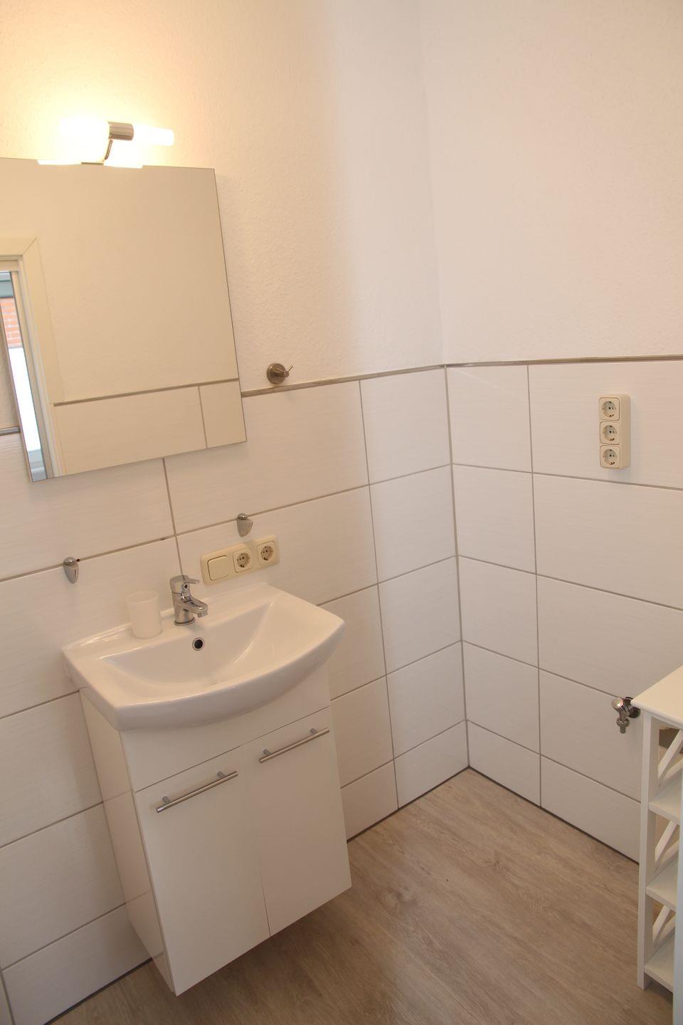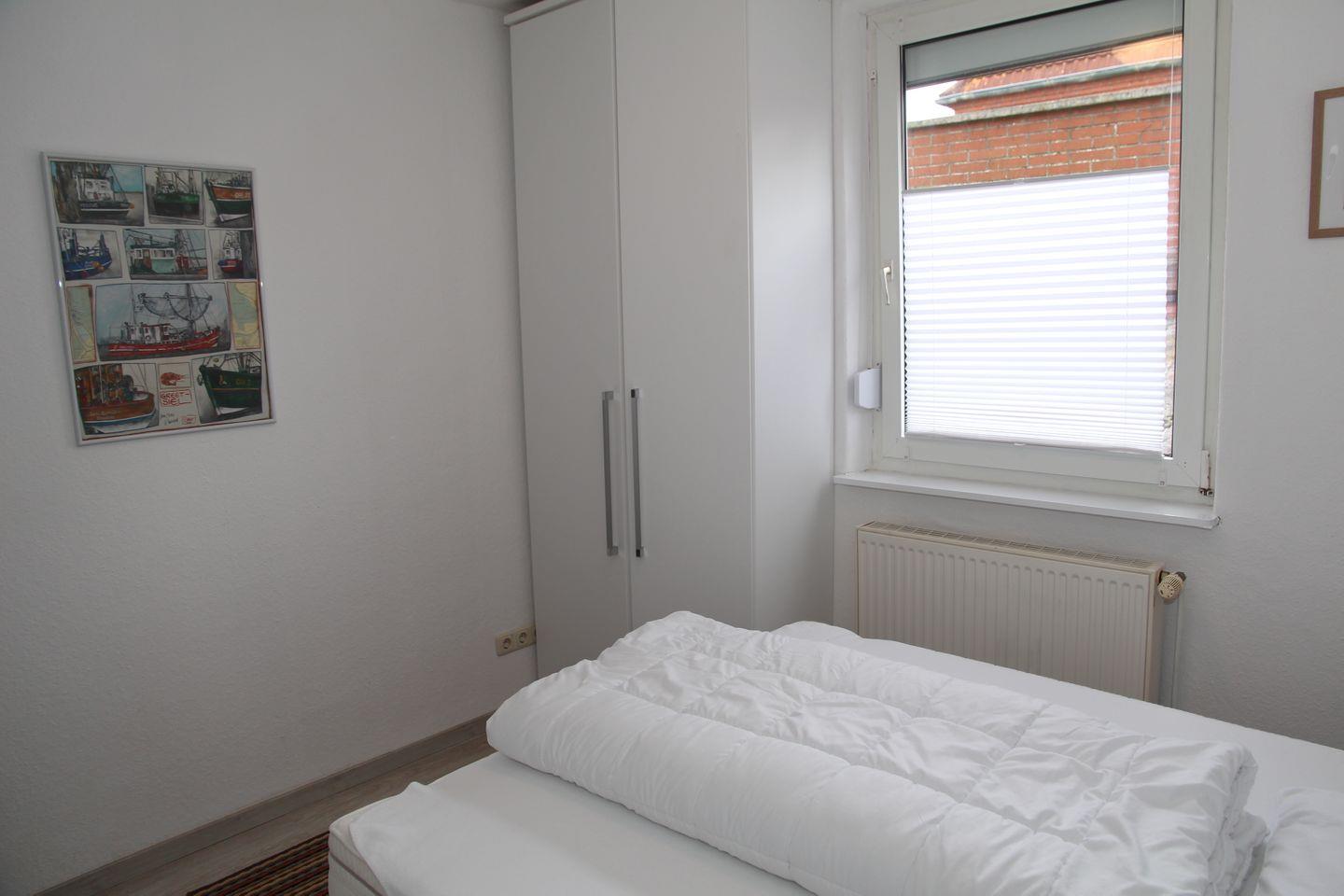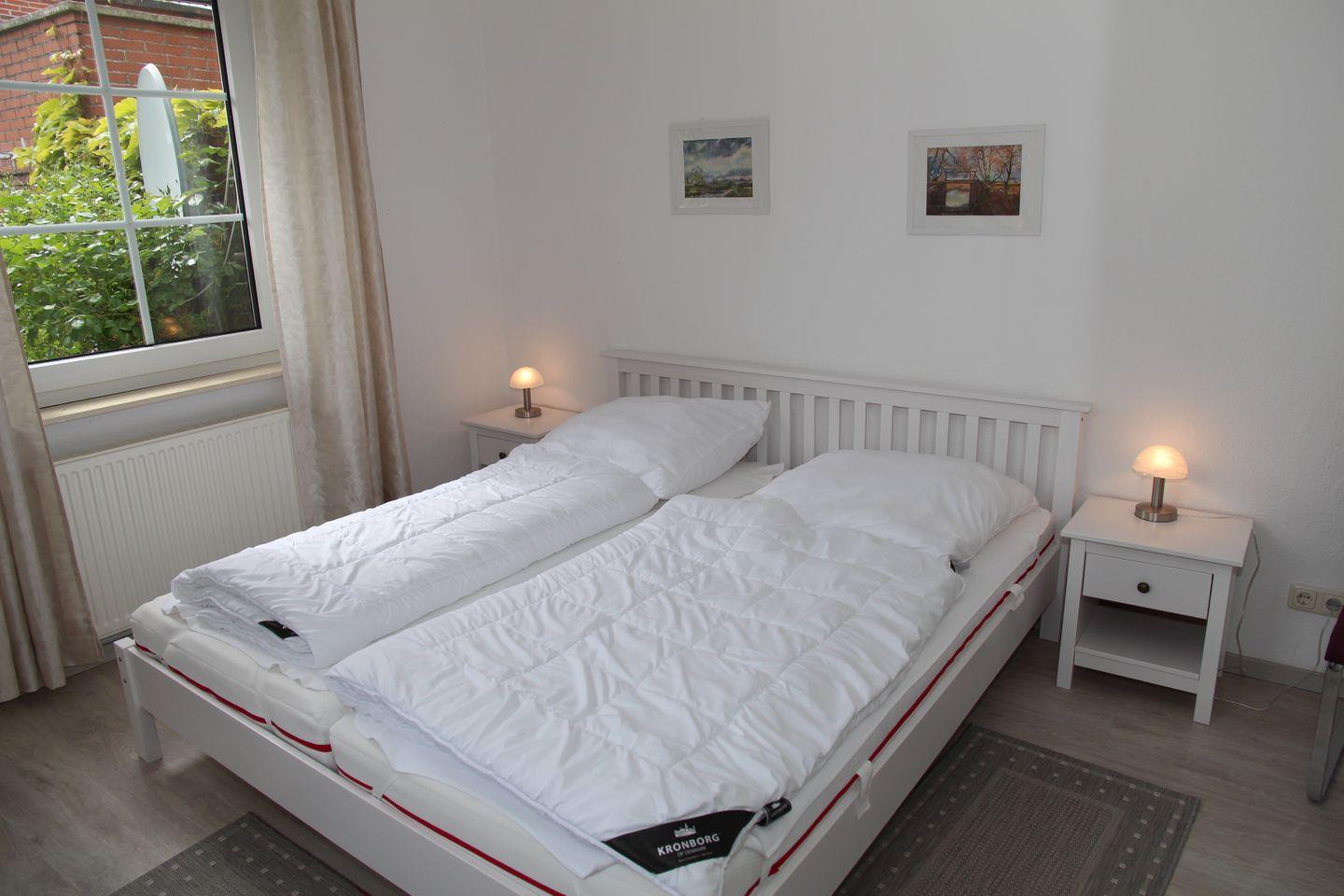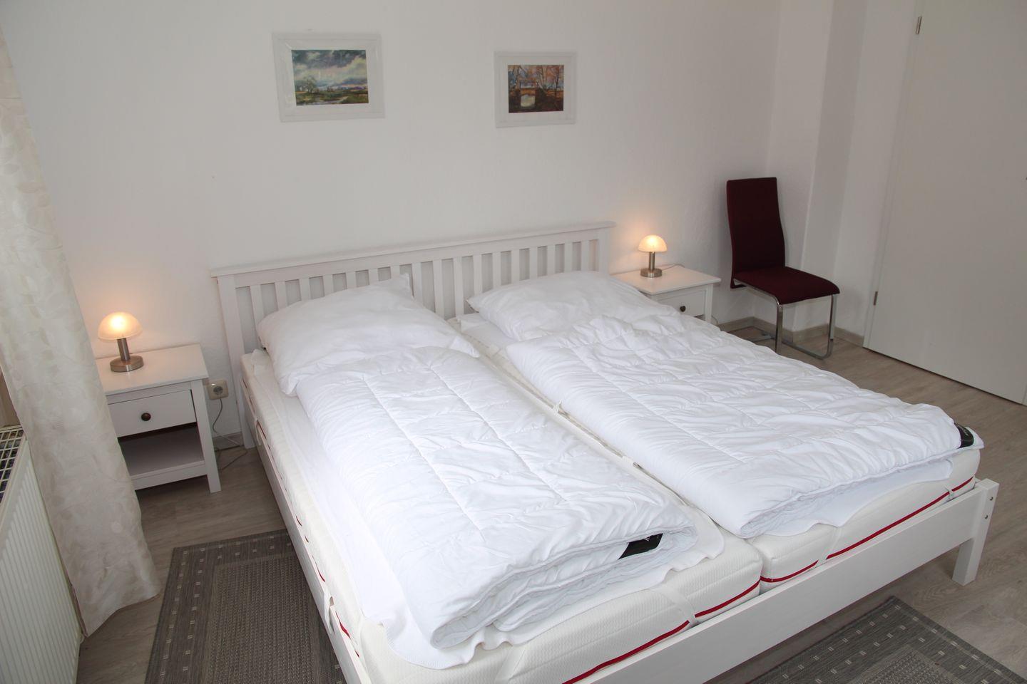 Eines der Schlafzimmer verfügt über ein Doppelbett mit Kleiderschrank, das andere Schlafzimmer verfügt über ein 1,40m breites Boxspringbett, Kleiderschrank und direkt zugänglichem neuem WC und Waschbecken. Eine Dusche ist direkt vom Flur aus erreichbar.