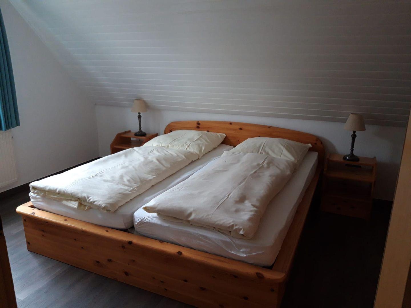 Träumen Sie schön in den beiden gemütlichen Schlafzimmern, eines ist mit einem Doppelbett und eines ist mit zwei Einzelbetten ausgestattet. Die Schlafzimmer sind mit Tarkettfußboden ausgelegt. Das 2021 komplett renovierte Duschbad im OG bietet eine Wohlfühloase. Das Ferienhaus verfügt über einen WLAN-Anschluss.