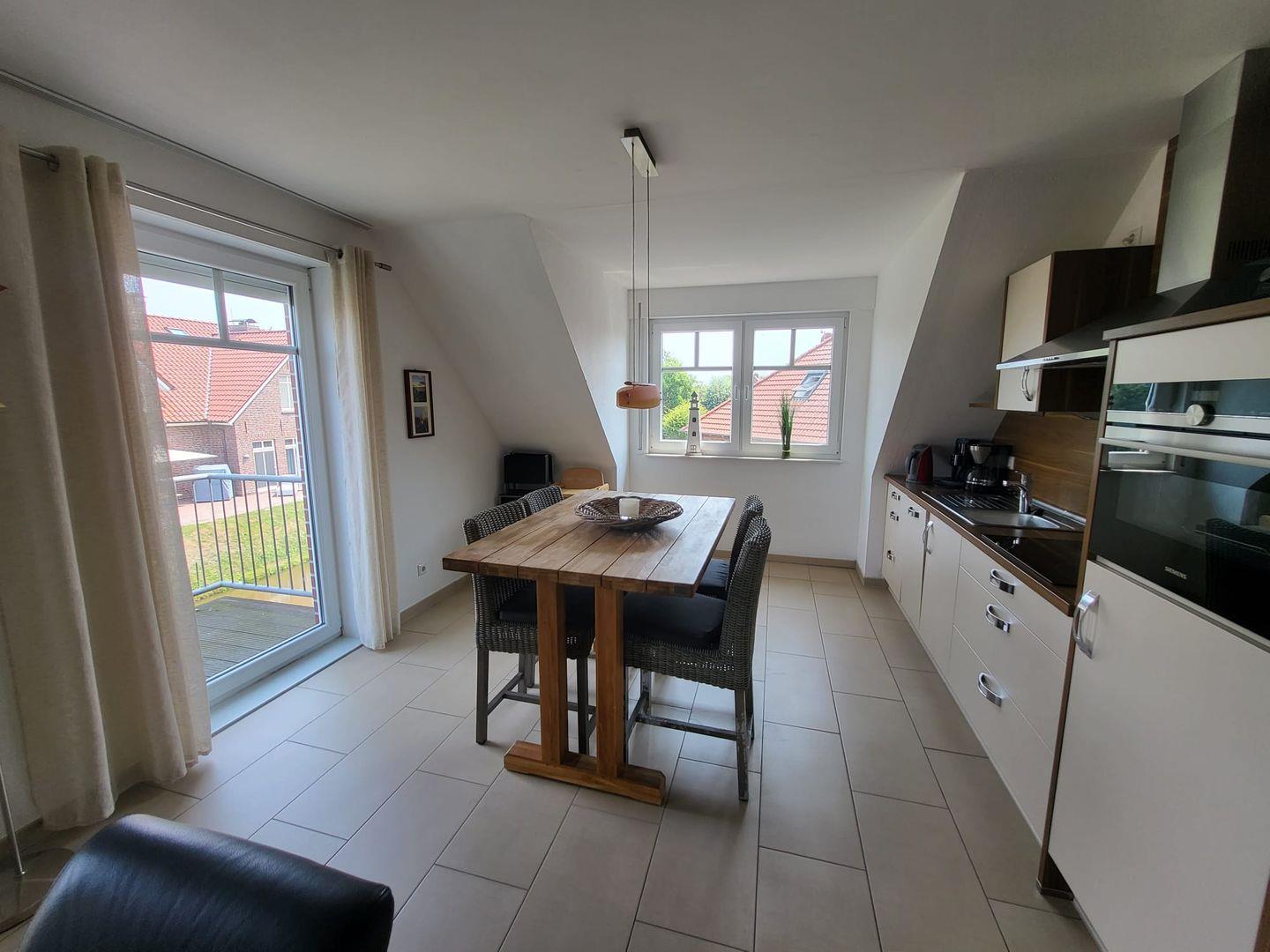 Verbringen Sie Ihren Urlaub in dieser Ferienwohnung mit gehobener Ausstattung und Fußbodenheizung im Feriengebiet “Greetsieler Grachten” für bis zu 4 Personen. Der Wohn- und Essbereich ist komfortabel eingerichtet und verfügt über ein bequemes Sofa mit Sesseln, Flachbild-TV und einer Multimediaanlage für DVD´s und Blue Ray. Angrenzend finden Sie die moderne und voll ausgestattete Küche mit Herd, Backofen und Kühlschrank sowie einer gemütlichen Essecke. Vom Wohnbereich gehen Sie auf den möblierten Balkon, wo Sie einen schönen Ausblick auf die Greetsieler Grachten genießen und die Seele baumeln lassen können. Genießen Sie die Ruhe in einem der beiden Schlafzimmer, die mit einem Doppelbett und zwei Einzelbetten eingerichtet sind. Außenrollos sind vorhanden! Ein modernes helles Bad mit großer Dusche steht Ihnen ebenso zur Verfügung Ein Bootsanleger mit Ruderboot zur Mitnutzung (auf eigene Gefahr) komplettiert die traumhafte Ferienwohnung. WLAN ist verfügbar! Ein Parkplatz steht vor dem Haus zur Verfügung.