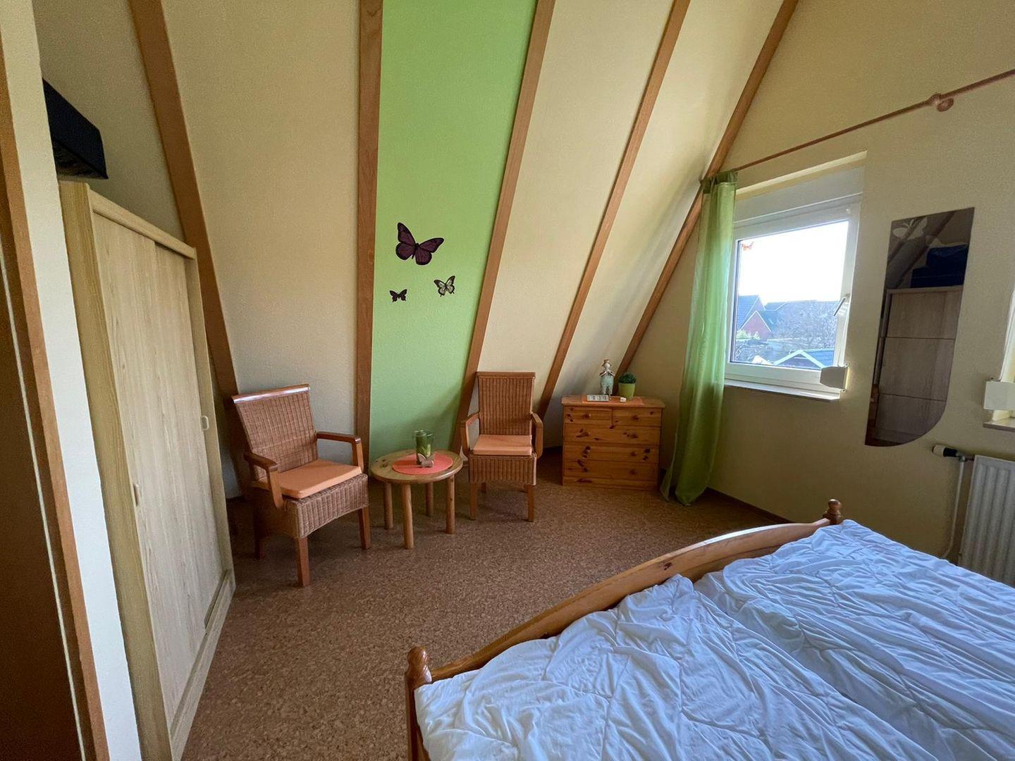 Das schöne massiv gebaute Nurdachhaus befindet sich in einer sehr ruhigen Sackgassenlage. Das Ferienhaus ist für bis zu 4 Personen ausgestattet. Im großzügigen Wohn-/Essbereich genießen Sie Ihren Urlaub mit Ausblick auf die überdachte Terrasse und in den Garten. Ein Flachbild-TV steht zur Verfügung. Die Küche ist voll ausgestattet. Hier kann sich der Hobbykoch austoben. Am großen Esstisch hat die ganze Familie Platz. Im Erdgeschoß befindet sich ein helles Duschbad. Eine Waschmaschine steht zur Verfügung. Im OG-Bereich gibt es zwei Schlafzimmer mit jeweils 2 Doppelbetten. Ein WC komplettiert die obere Etage. Das nicht einsehbare Gartengrundstück lädt zum Sonne tanken ein. Die überdachte Terrasse mit gemütlichem Strandkorb sorgt für entspannte Stunden. Ihr Hund ist herzlich willkommen! Das Grundstück ist komplett eingezäunt. Kein WLAN verfügbar.
