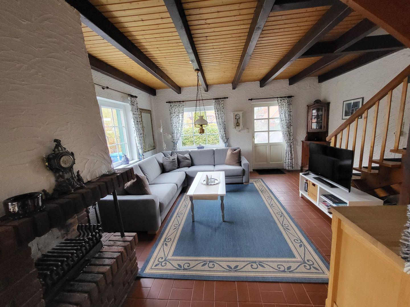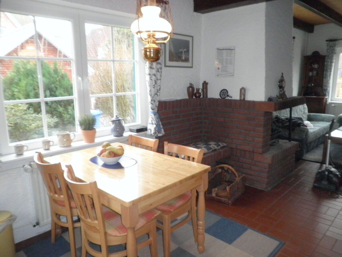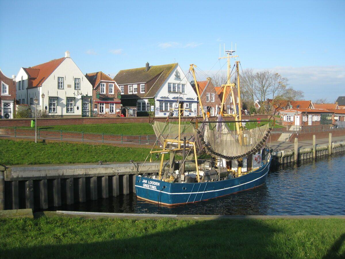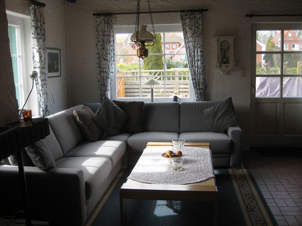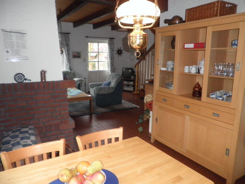 Das gemütliche, lichtdurchflutete Fischerhaus liegt in einer ruhigen Seitenstraße im historischen Dorfkern von Greetsiel. In 2 Gehminuten erreichen Sie den Fischerhafen. Das schöne 1979 erbaute Ferienhaus wurde 2011 mit viel Sorgfalt renoviert. Kommen Sie herein! Sie werden sich gleich wohlfühlen. Das Haus ist liebevoll mit vielen Details eingerichtet. In der vollausgestatteten Küche mit u. a. Geschirrspüler, Kühlschrank mit Gefrierfach, Mikrowelle, Küchenmaschine usw. können Speisen zubereitet und dann am gemütlichen Esstisch verzehrt werden. Die große Couchgarnitur im Wohnbereich lädt zu kuscheligen Abenden vor dem Kamin ein. In der Medienecke finden Sie einem Flachbild-TV, DVD-Player und ein Radio. Im Erdgeschoß befindet sich ebenso das helle moderne Duschbad, das über eine ebenerdige Dusche verfügt. Eine gut begehbare Treppe führt ins Obergeschoß zu den zwei Schlafzimmern, eines davon mit Dachfenster mit Blick in Richtung Hafen. Hier befindet sich das Doppelbett. Das andere Zimmer ist mit 2 Einzelbetten und einem Kinderbett ausgestattet. Die Terrasse mit modernen Gartenmöbeln und einem Strandkorb komplettieren Ihren Urlaub. Entspannung und Ruhe können Sie hier genießen. Ebenfalls kann hier ungestört und windgeschützt gefrühstückt, gegessen, gegrillt (bitte einen Grill mitbringen) oder Ostfriesentee getrunken werden. Ein Gartenhaus für mitgebrachte Fahrräder ist vorhanden. Ein Parkplatz befindet sich direkt vor dem Haus. WLAN ist verfügbar! Haustiere sind hier nicht erlaubt! Wünschen Sie mehr Leben um sich? 30 Schritte und Sie befinden sich mittendrin!