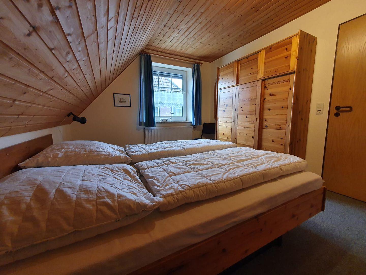 Willkommen im Ferienhaus Mupfel! Die helle gemütlich eingerichtete Doppelhaushälfte sorgt für Entspannung in Ihrem Urlaub. Es liegt in einer ruhigen Seitenstraße, ca. 5 Minuten zu Fuß zum Ortskern. Treten Sie ein! Durch den Flur gelangen Sie in den hellen Wohn- und Essbereich. Der Wohnbereich bietet eine gemütliche Ledercouch und 2 Sessel. Mit Flachbild-TV, Micro-Musikanlage können Sie entspannte Stunden genießen. Auch der Kamin lädt zu ruhigen (Kuschel-)Abenden ein. Von hier gelangen Sie auf die Terrasse, wo Sie die Seeluft genießen und sich den frischen Wind um die Nase wehen lassen können. Am großen Esstisch können bis zu 6 Personen z. B. das Abendessen genießen, Klönen, Spieleabende veranstalten usw. Sie blicken von hier direkt in den Garten. Angrenzend befindet sich die separate Küche mit Kühlschrank, Gefrierfach, Backofen, Cerankochfeld, Geschirrspüler, Mikrowelle und umfangreicher Ausstattung (z. B. Kaffeemaschine, Toaster, Eier- und Wasserkocher). Ein Telefonanschluß mit kostenfreier Einwahlmöglichkeit in das deutsche Festnetz finden Sie im Flur. WLAN ist ebenfalls verfügbar. Im Erdgeschoß gibt es noch ein Gäste-WC. Im Obergeschoß befinden sich 2 Schlafräume, eines mit einem Doppelbett und eines mit Einzelbetten. Ein Kinderbett, ein Hochstuhl sowie ein Wickeltisch stehen für die Kleinen bereit. Hier kommen Sie auch in das helle Duschbad. Durch das zweite Schlafzimmer gelangen Sie zum Schlafraum im Dachgiebel, wo ebenfalls noch 2 Einzelbetten stehen. Hier gibt es einen Relaxsessel und ein Flachbild-TV - Entspannung pur. Alle Fenster verfügen über Außenrollos! Eine Waschmaschine, Bügelbrett/-eisen, eine Wäschespinne für den Außenbereich stehen für die Wäschepflege zur Verfügung. Abstellkammern sind im Innen- und Außenbereich vorhanden. Zum Haus gehört ein eigener Parkplatz auf dem Gelände der Eigentumsanlage.