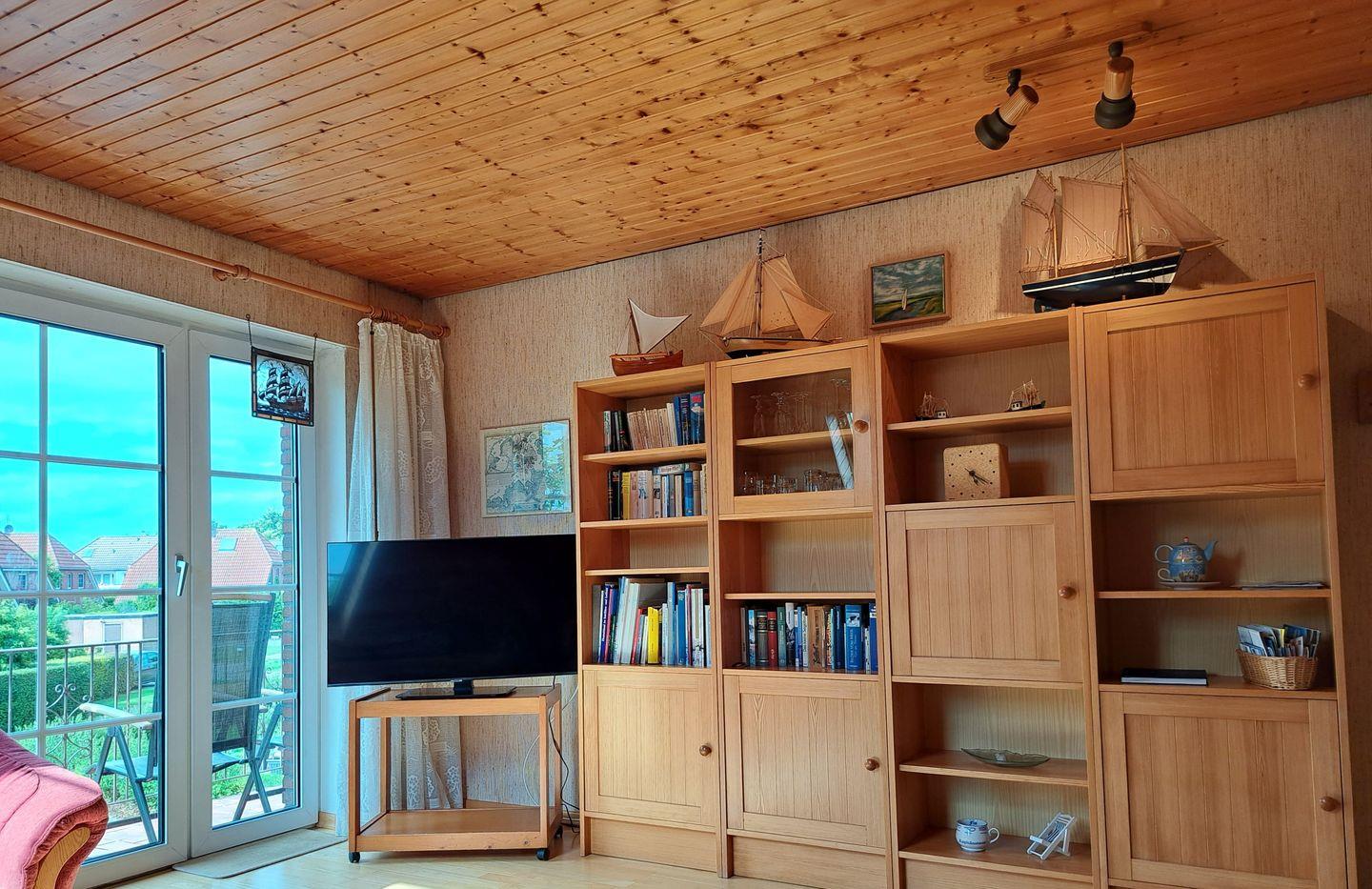Die Ferienwohnung liegt im Obergeschoß eines Vier-Parteienhauses im ruhigen Ortsteil von Greetsiel nur wenige Gehminuten vom Zentrum entfernt. Der Wohnbereich verfügt u. a. über eine Couchgarnitur, einen Relaxsessel und Flachbild TV und lädt zu gemütlichen Abenden ein. Von hier gelangen Sie auf den Balkon, wo Sie die Ruhe genießen können. Neben dem Wohnzimmer befindet sich die helle Küche mit einem Esstisch und einer gemütlichen Bank. Die Küchenzeile bietet ein Cerankochfeld, Backofen, Geschirrspüler, Kaffeemaschine, Wasserkocher etc. Neben der Küche gibt es noch einen kleinen Abstellraum mit Waschmaschine, Staubsauger usw. Vom Flur aus geht es ins geräumige Badezimmer mit Dusche und WC. Ein Fön ist vorhanden! Nebenan befindet sich das Schlafzimmer mit Doppelbett und großem Kleiderschrank. Vom Wohnbereich führt eine Raumspartreppe in das Dachgeschoß, wo sich noch 2 Einzelbetten befinden. Die Betten sind durch eine Holzwand abgetrennt. Alle Fenster (bis auf das Dachgeschoß) sind mit Außenrollos ausgestattet. Ein Parkplatz befindet sich vor dem Haus.