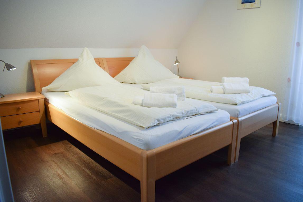 Die 80qm große Wohnung „Silbermöwe“ liegt im Obergeschoss und bietet auf zwei Etagen bis zu 6 Personen alles was für eine erholsame Auszeit der Extraklasse benötigt wird; so befindet sich neben einem Holzkamin auch eine Sauna in der Wohnung. Auf der zweiten Etage finden Sie eines der drei Schlafzimmer der Wohnung, von dem aus Sie einen atemberaubenden Blick auf das Naturschutzgebiet der Leyhörn haben. Außerdem gehört zur Wohnung ein PKW-Stellplatz am Haus.