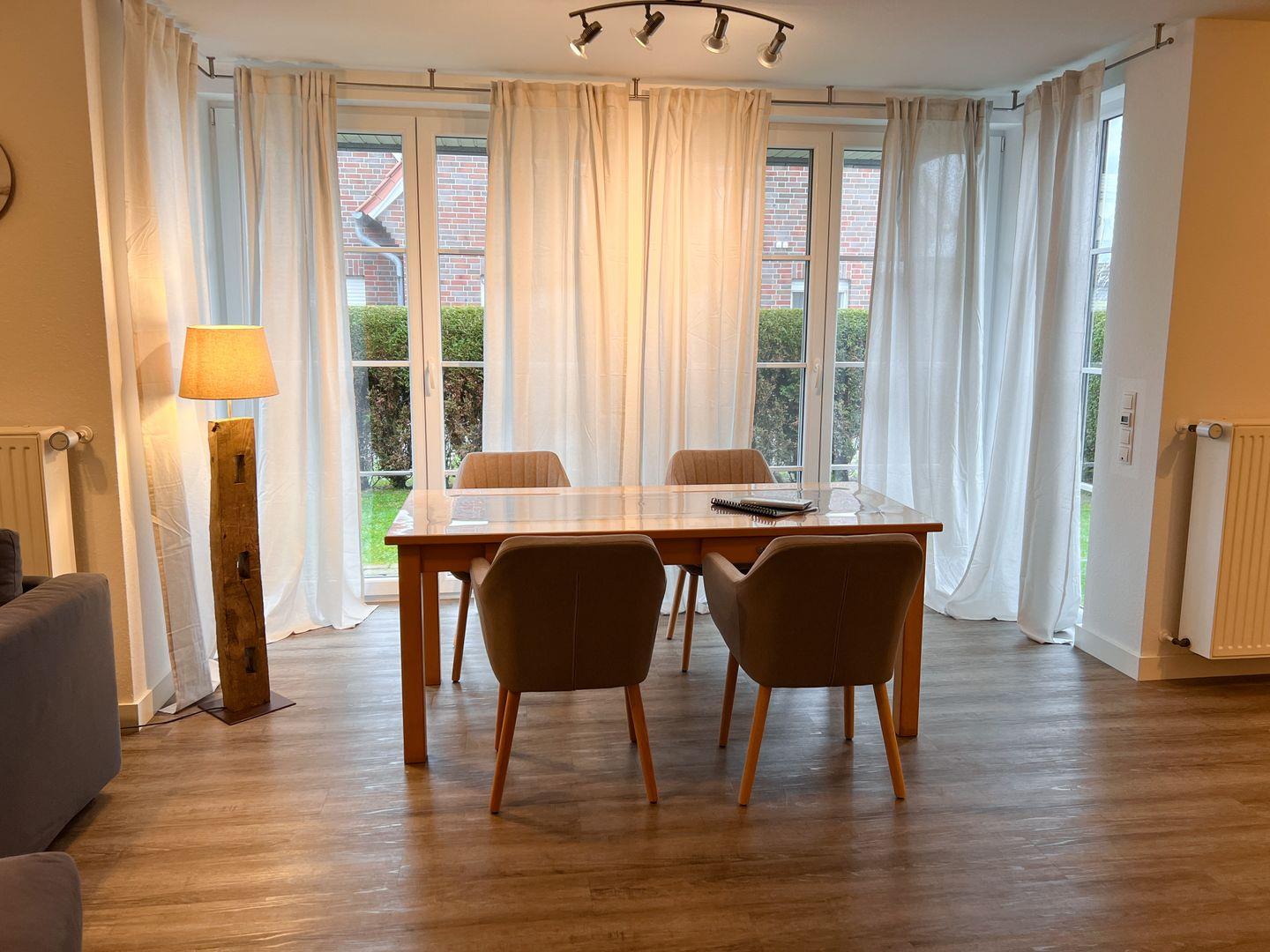Unsere Ferienwohnung Deichmöwe ist zwar ehrlicherweise nach keiner realen Möwen Art benannt, doch ist ihr Name eine Anspielung auf ihre traumhafte Lage innerhalb des verkehrsberuhigten Möwennests. Die ca. 76qm große Wohnung befindet sich im Erdgeschoss des Hauses im An’t Hellinghus 1C. Sie bietet bis zu 4 Personen Platz und besticht unter anderem durch einen Kamin, einer Sauna und einer modernen Einrichtung. Zudem gehört neben einem nicht eingezäunten Garten ein PKW-Stellplatz zur Wohnung.