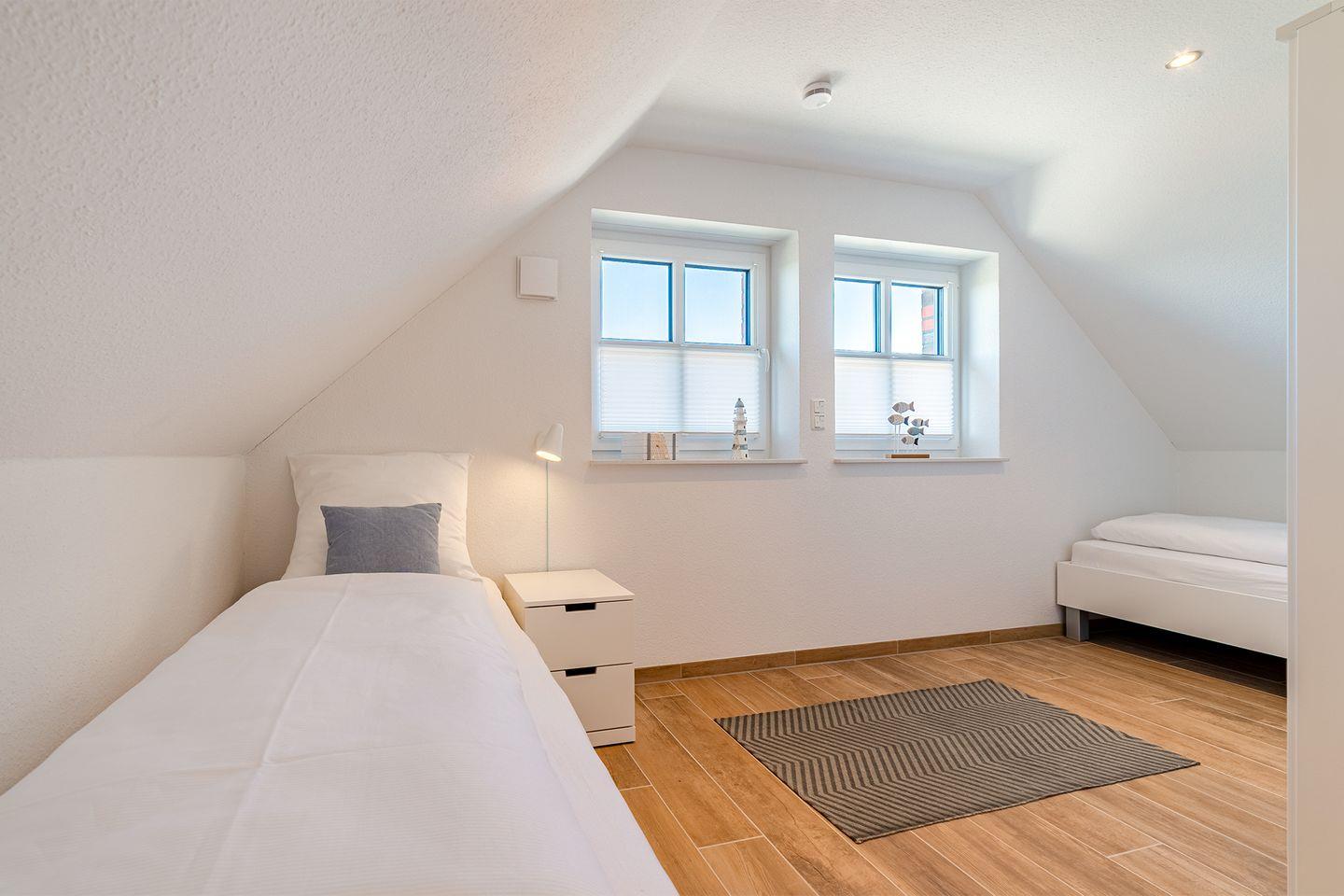 Schlafzimmer mit zwei Einzelbetten (90x200 cm und 90x190 cm) im OG