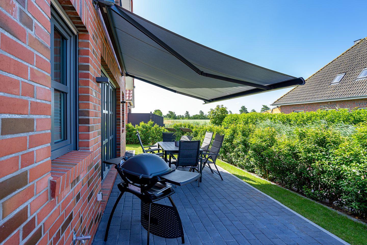 Ein schöner Gartenbereich mit einer Terrasse (südwestlich) und elektrischer Markise