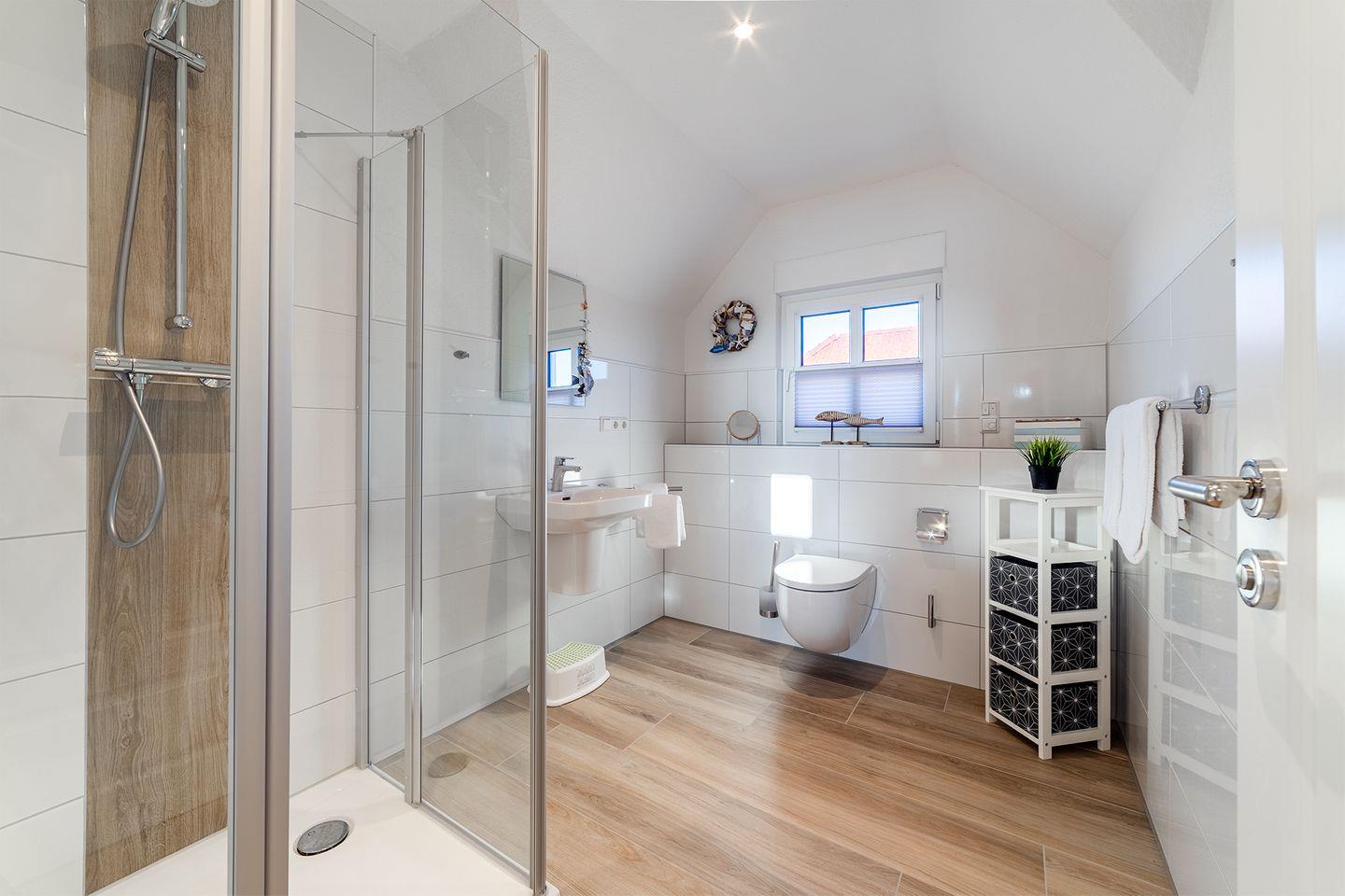 Badezimmer mit Dusche, Waschmaschine/Trockner (Kombigerät) im EG