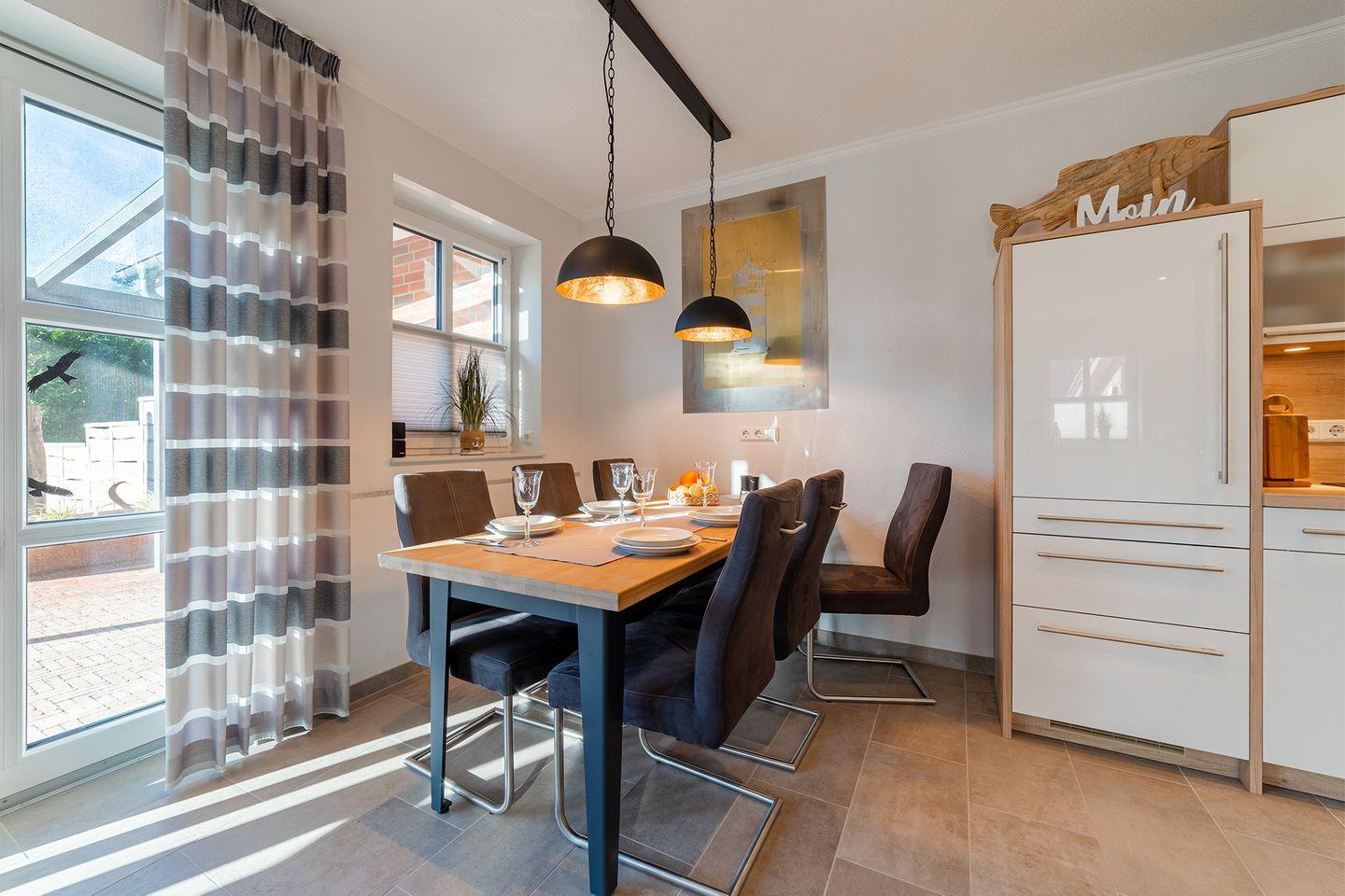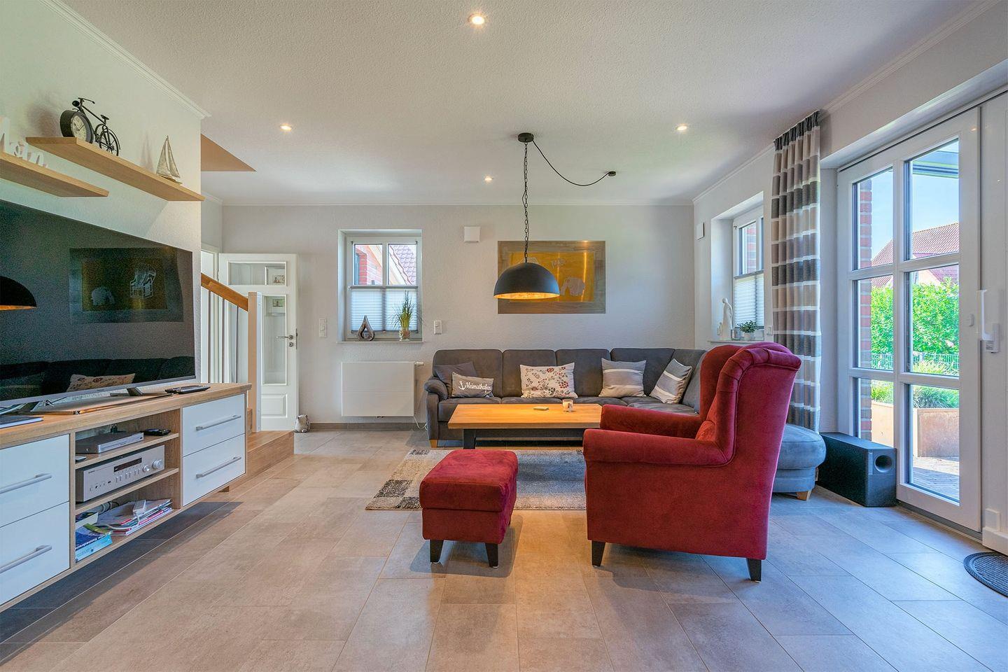 Wohnbereich: Der große Wohn- und Essbereich mit einer umfassend ausgestatteten Küche bildet das Herzstück des Hauses – ideal für gemeinsame Stunden.
