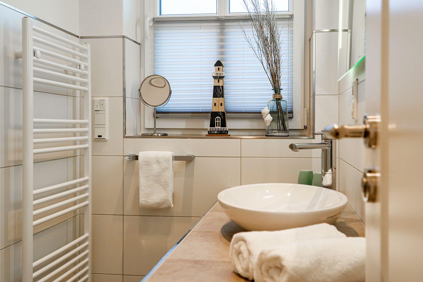 Badezimmer 1: Mit Dusche im Obergeschoss.