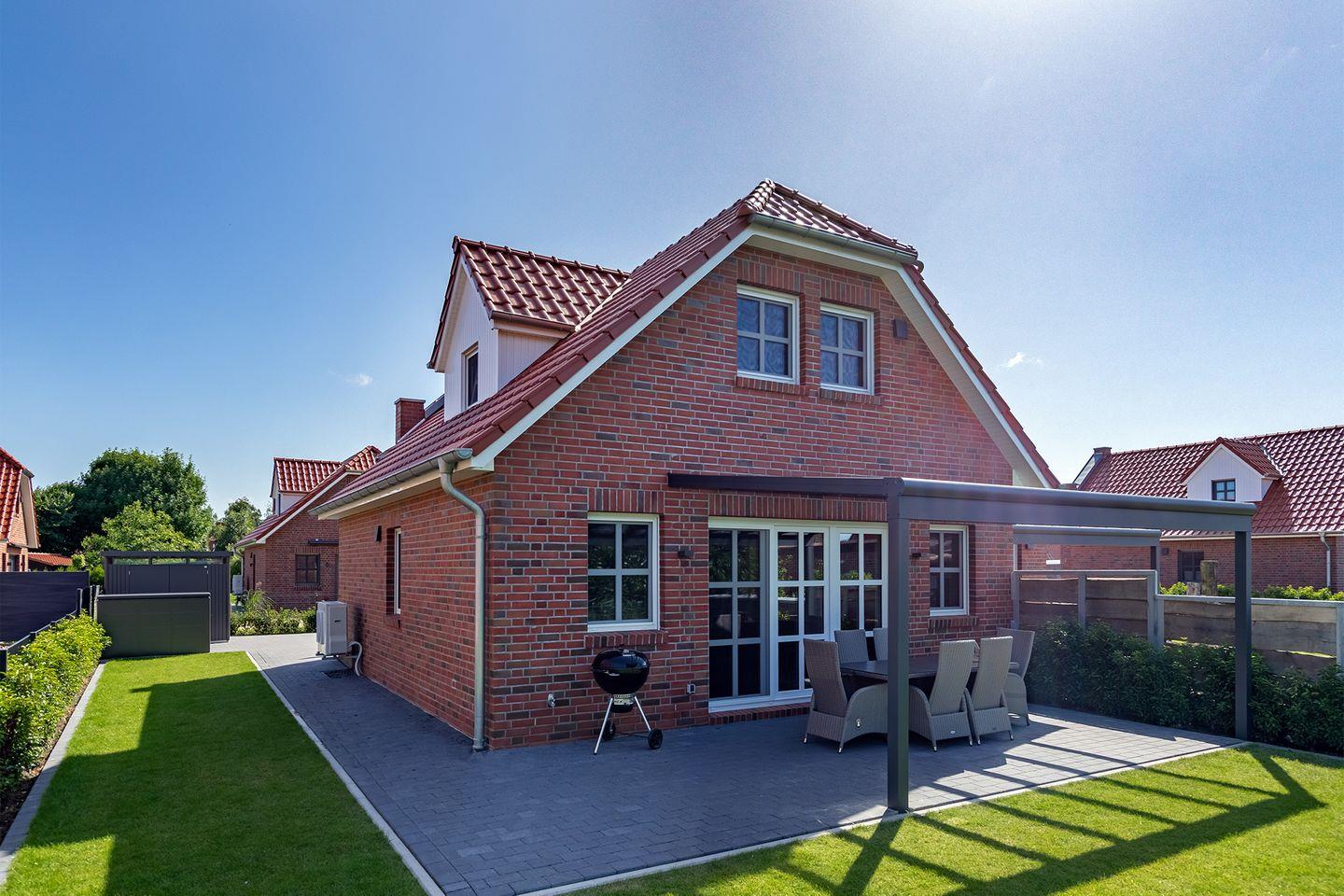 Hochwertiges Friesenhaus für bis zu sechs Personen mit großem Garten, überdachter Terrasse und moderner Ausstattung. Ideal für entspannte Urlaubstage an der Nordseeküste