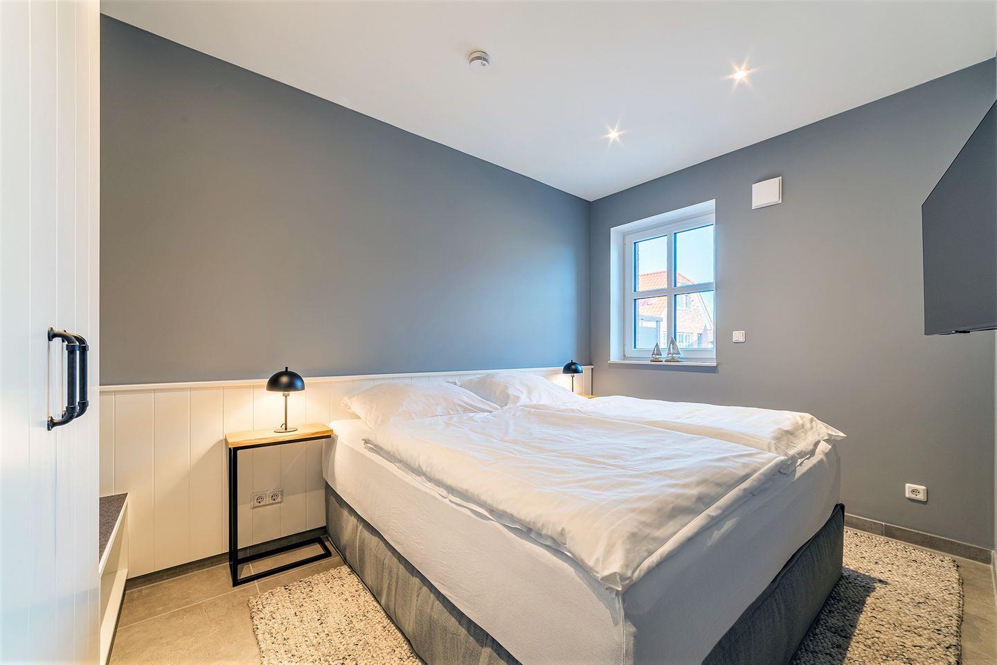 EG Schlafzimmer mit Boxspring-Doppelbett (180x200 cm) und TV