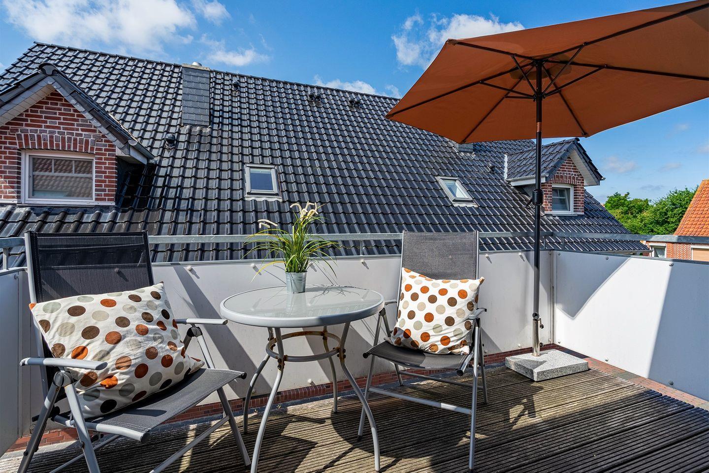 Auf dem Balkon stehen Ihnen Sitzgelegenheiten und ein Sonnenschirm zur Verfügung.
