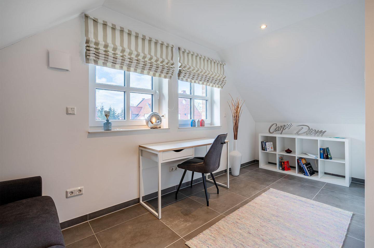 Der Wohn- und Essbereich bildet den Mittelpunkt des Hauses und sorgt mit seiner Landhausküche für gemütliche Stunden. Der Raum ist großzügig geschnitten und ideal, um gemeinsam zu kochen, zu essen und zu entspannen.