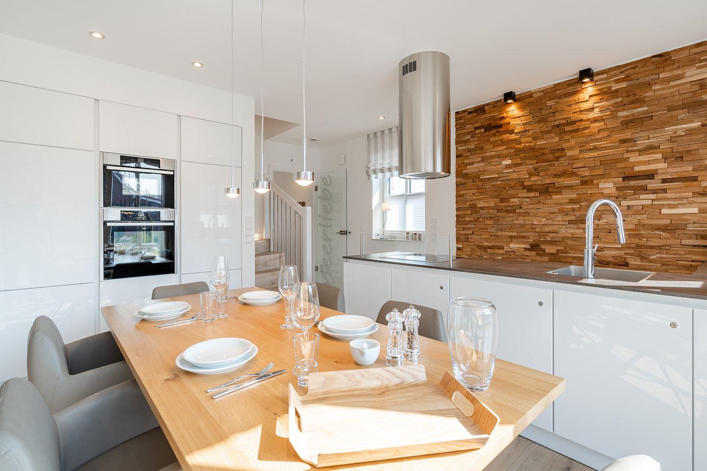 Die „Meerliebe“ ist ein Neubau im modernen Friesen-Stil mit einem großzügigen Garten und bietet Platz für 6 Personen. Die Küche ist als aktive Kochküche zum Ess- und Wohnzimmer hin ausgerichtet und verfügt neben der Standardausstattung über besondere Highlights wie einen Dampfgarer, eine Kenwood Küchenmaschine und einen Jura Kaffeeautomaten. Für die kleinen Gäste sind ein Kinderstuhl, ein Reisebett sowie spezielles Geschirr und Besteck vorhanden.