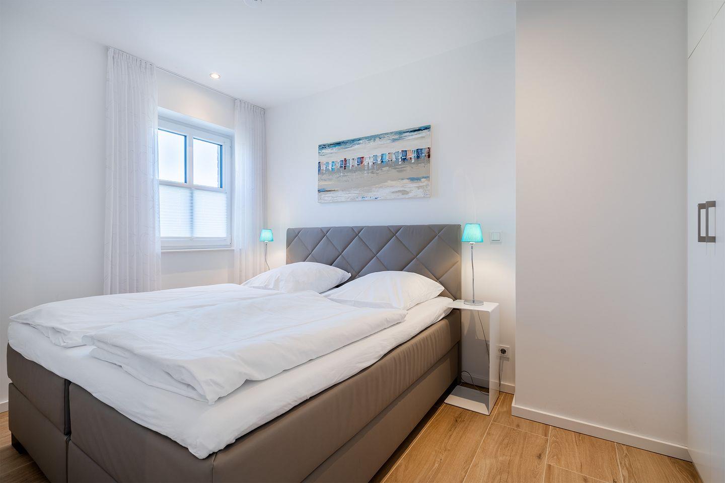 Schlafzimmer im Erdgeschoss: Boxspringbett (180x200 cm) mit Viscoschaumtoppper