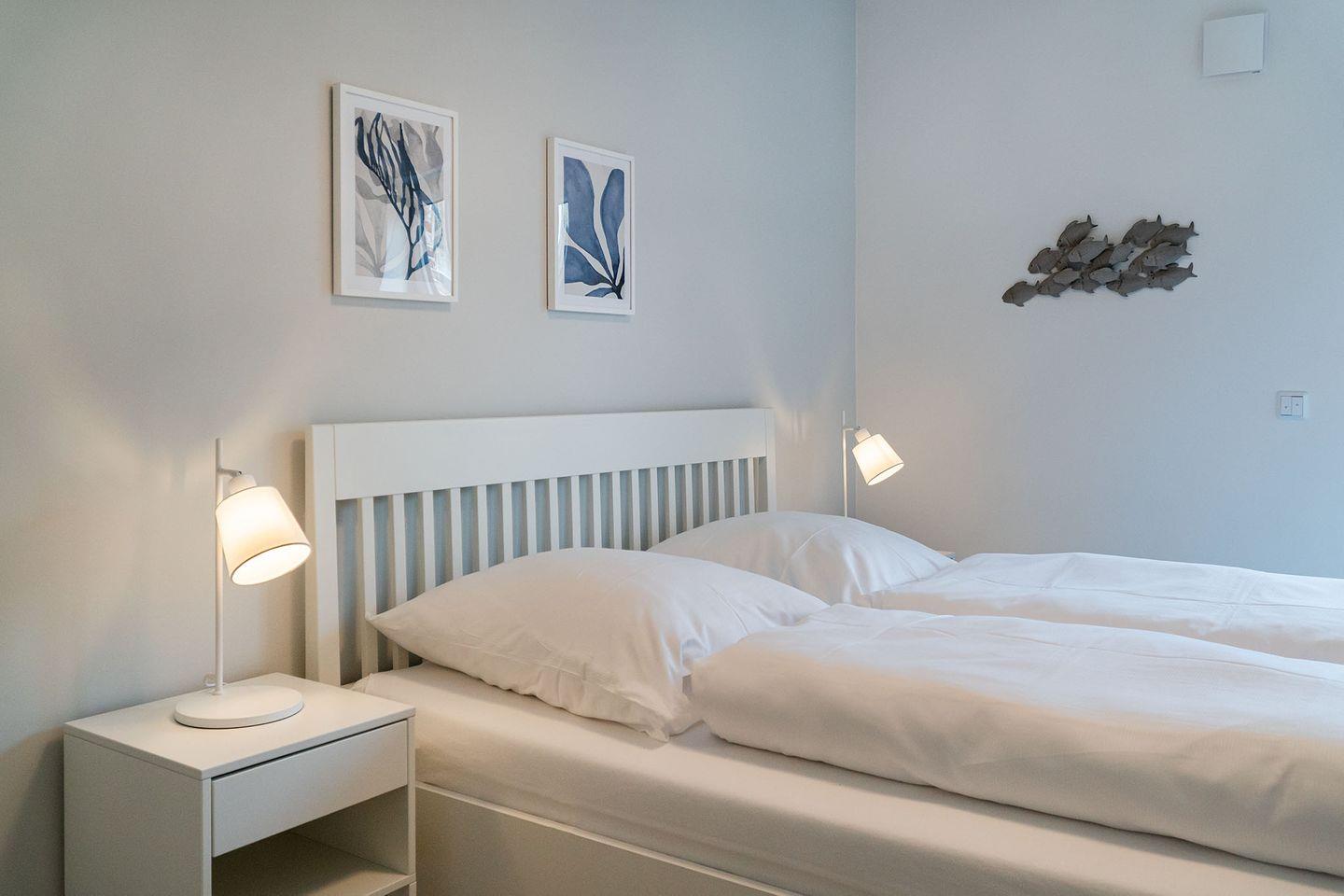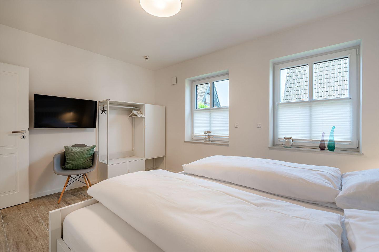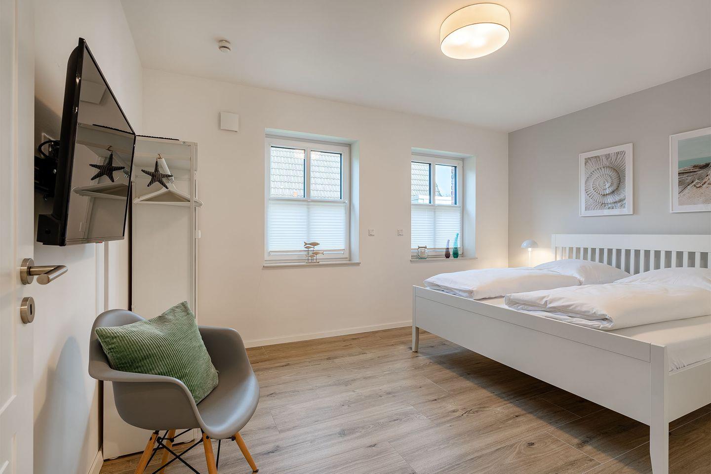 Die Ferienwohnung "Hafenmuschel" bietet auf ca. 70qm Ruhe und Komfort in zentraler Lage. Mit zwei getrennten Schlafzimmern mit TV, einem lichtdurchfluteten Wohnraum mit Küchen- und Essbereich sowie einem modernen Badezimmer mit ebenerdiger Dusche und WC, ist die Wohnung ideal für einen erholsamen Urlaub. Genießen Sie die alleinige Nutzung der Außensauna an kalten Wintertagen. Ein eigener Parkplatz, Fahrradabstellraum, elektrische Jalousien und Fliegengitter runden das Angebot ab.