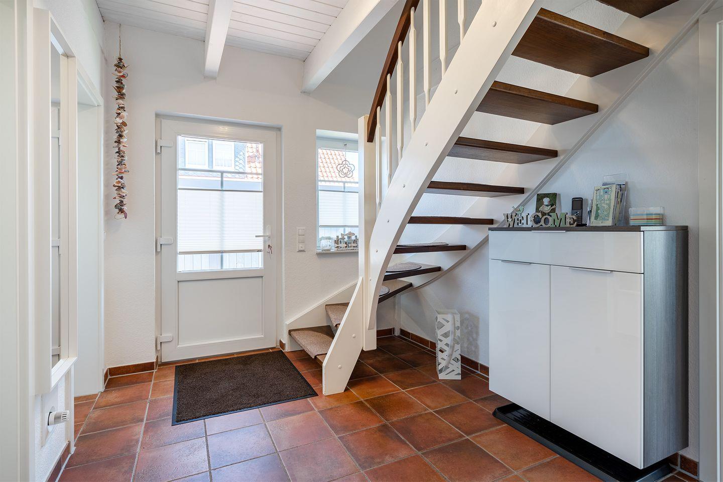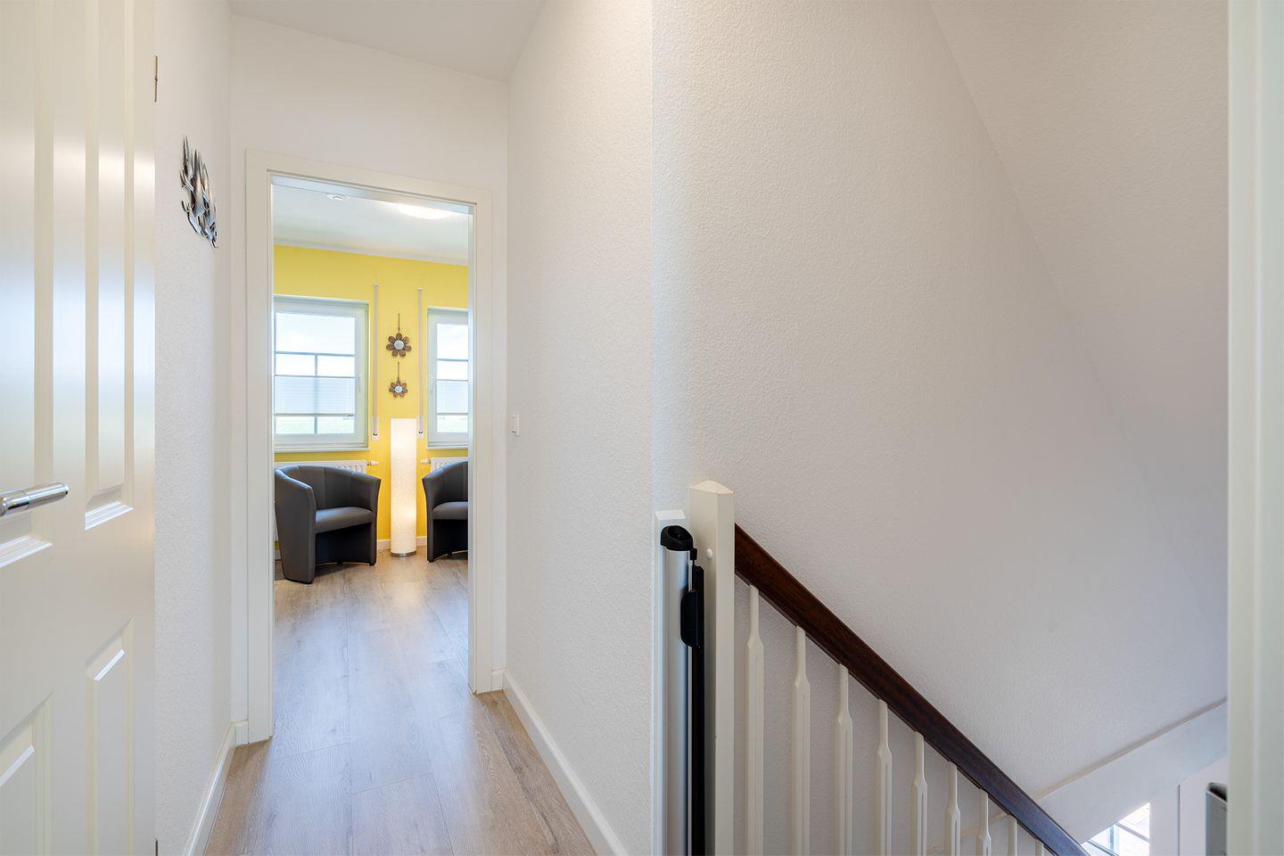 Fensterfronten: Großzügige Fenster in den Wohn- und Schlafzimmern, die ein Gefühl von Ruhe und Weite vermitteln. Aus der oberen Etage haben Sie einen Blick bis zum Deich.
