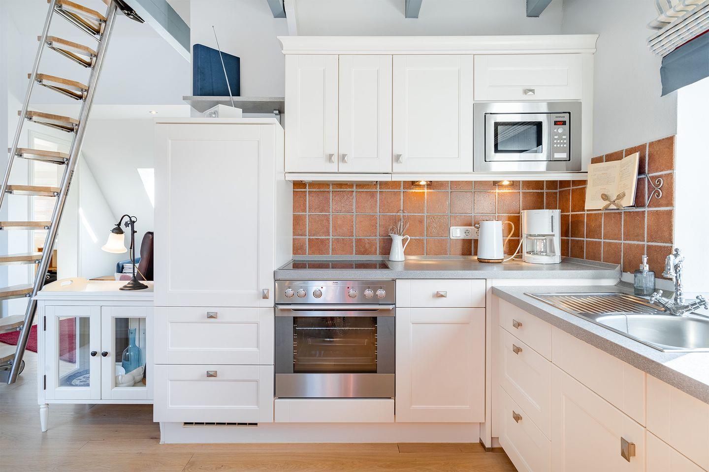 Die Küche ist mit allem ausgestattet, was Sie für die Zubereitung eines leckeren Frühstücks oder Abendessens benötigen – inkl. Spülmaschine und Mikrowelle.
