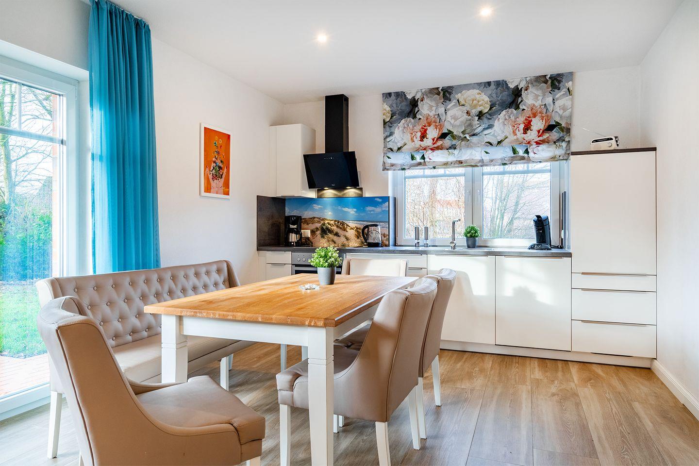 Der großzügige, lichtdurchflutete Wohn-Essbereich mit moderner Küche ist der perfekte Ort, um gemeinsam zu kochen, zu essen oder einfach zu entspannen. Die Küche bietet alles, was Sie für Ihre Mahlzeiten oder ein gemütliches Frühstück benötigen.