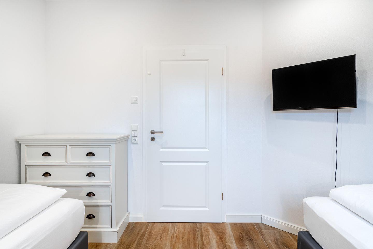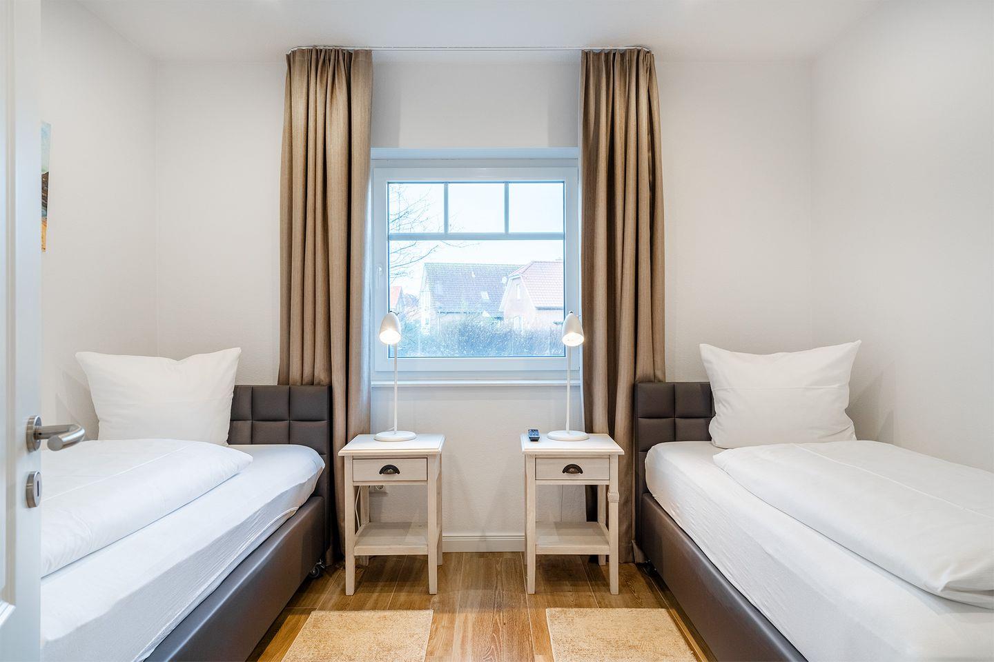 Das zweite Schlafzimmer verfügt über zwei einzelne Boxspringbetten (90x200 cm), die bei Bedarf zusammengeschoben werden können.