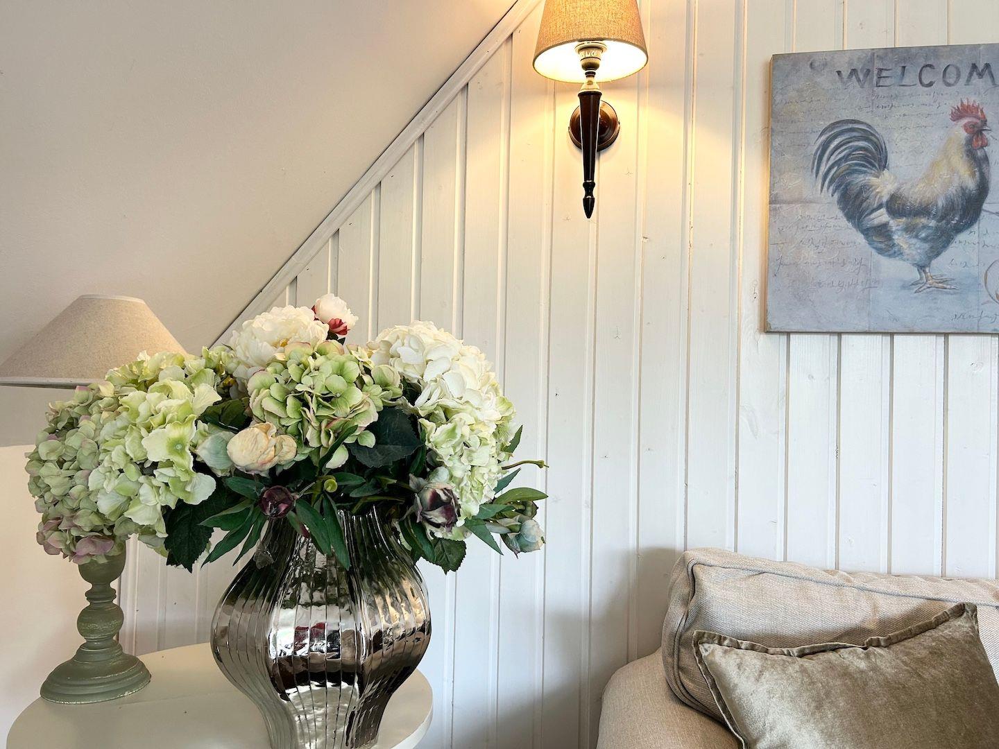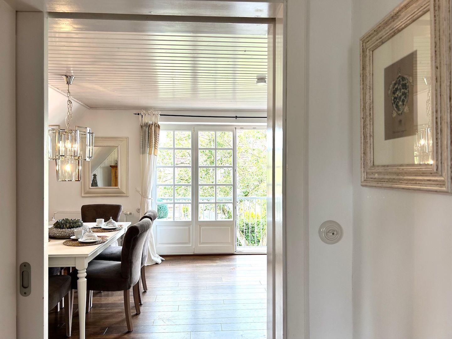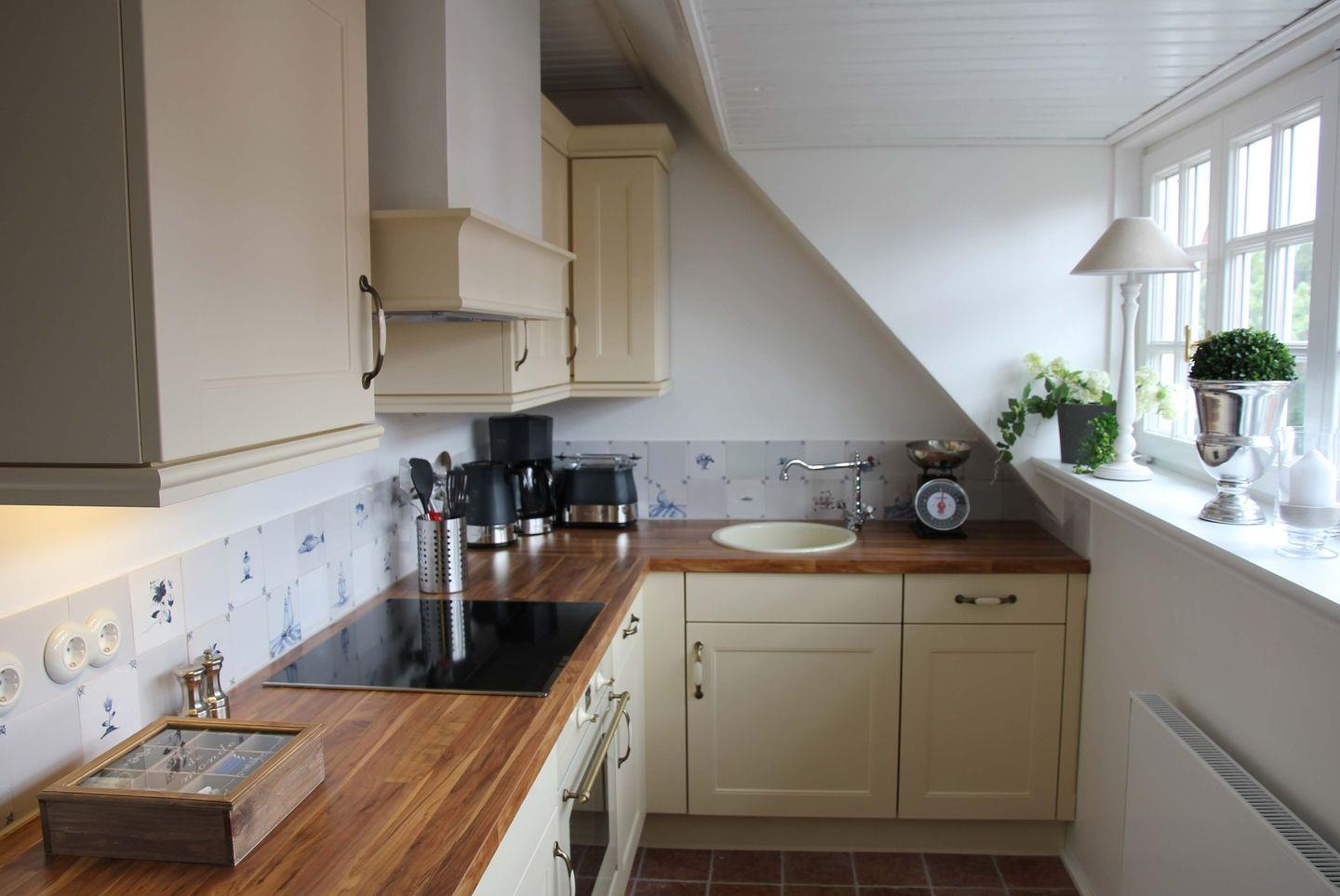 Dieses großzügige 120 m² Apartment mit Landhaus-Charme bietet den perfekten Rückzugsort für 2-6 Gäste, denen Ruhe und ein eigener Garten wichtig ist. Im OG und DG erwartet Sie ein großes Wohn-Esszimmer mit Eichendielen, antiken Weichholzmöbeln und Blick in den Garten, eine separate Küche mit Delfter Fliesen und 2 Schlafzimmer mit hochwertigen Boxspringbetten. Ein weiteres Schlafzimmer befindet sich direkt unter dem Dach und ist über eine Spartreppe von einem der beiden Schlafzimmer erreichbar.