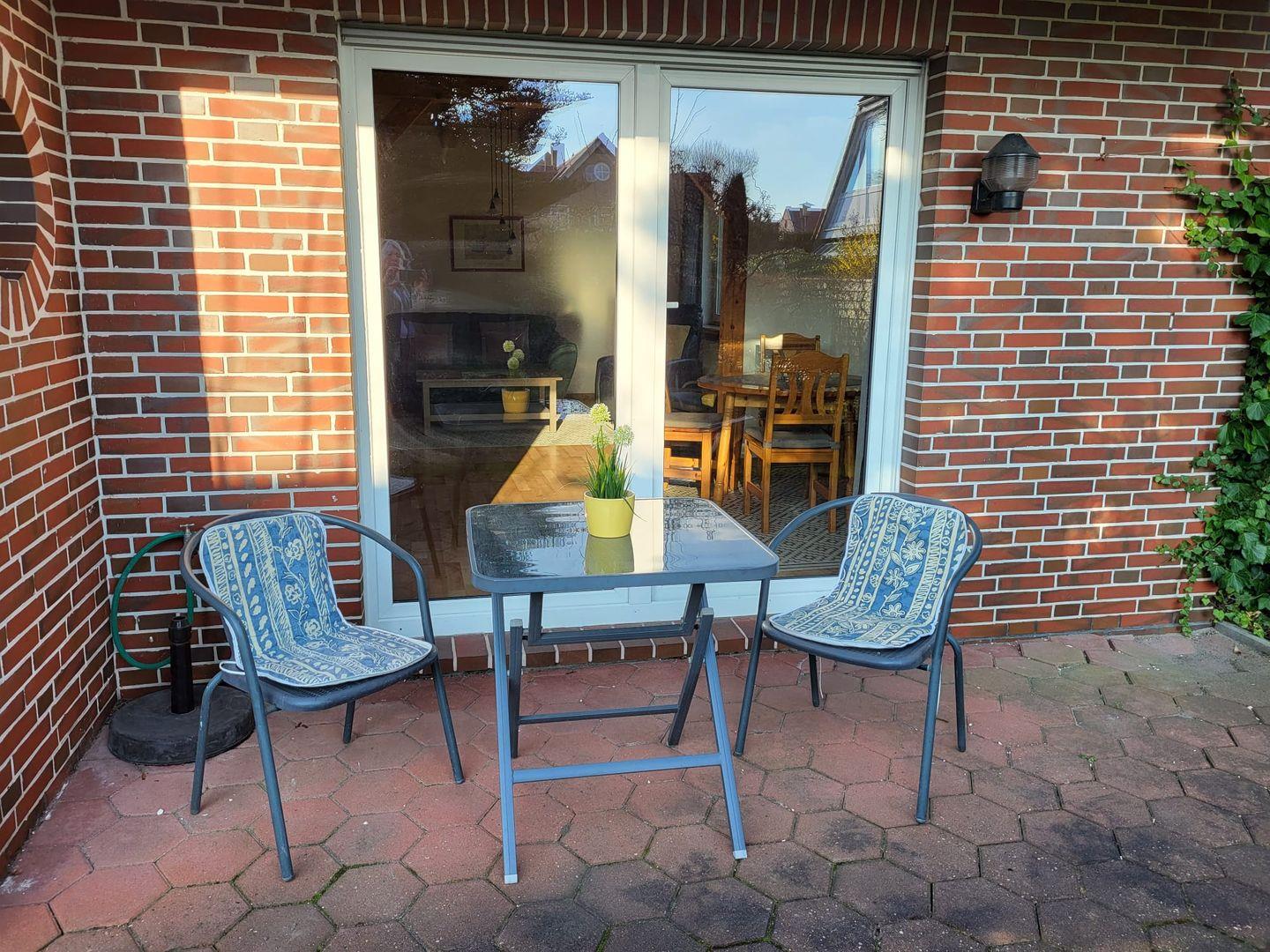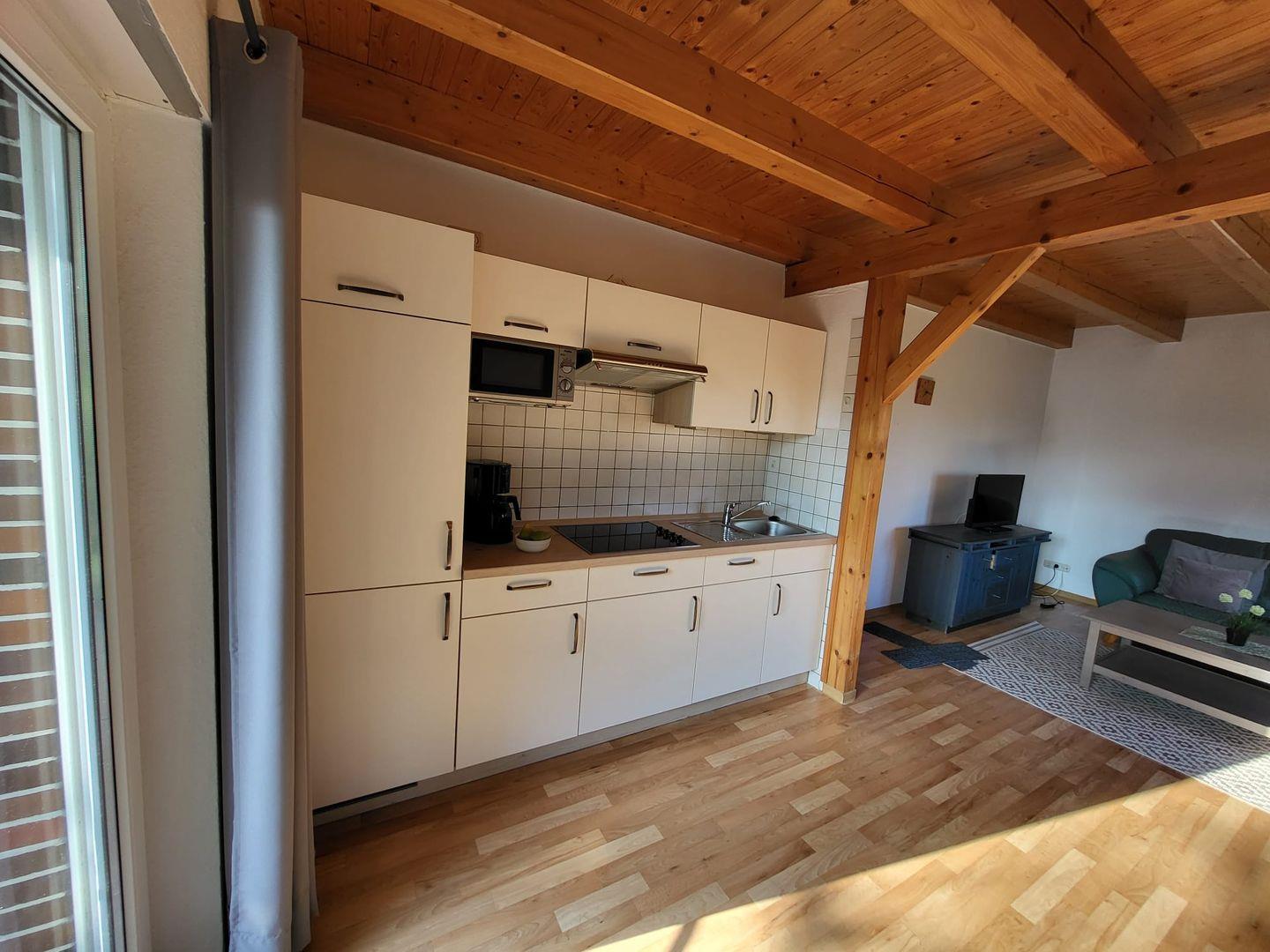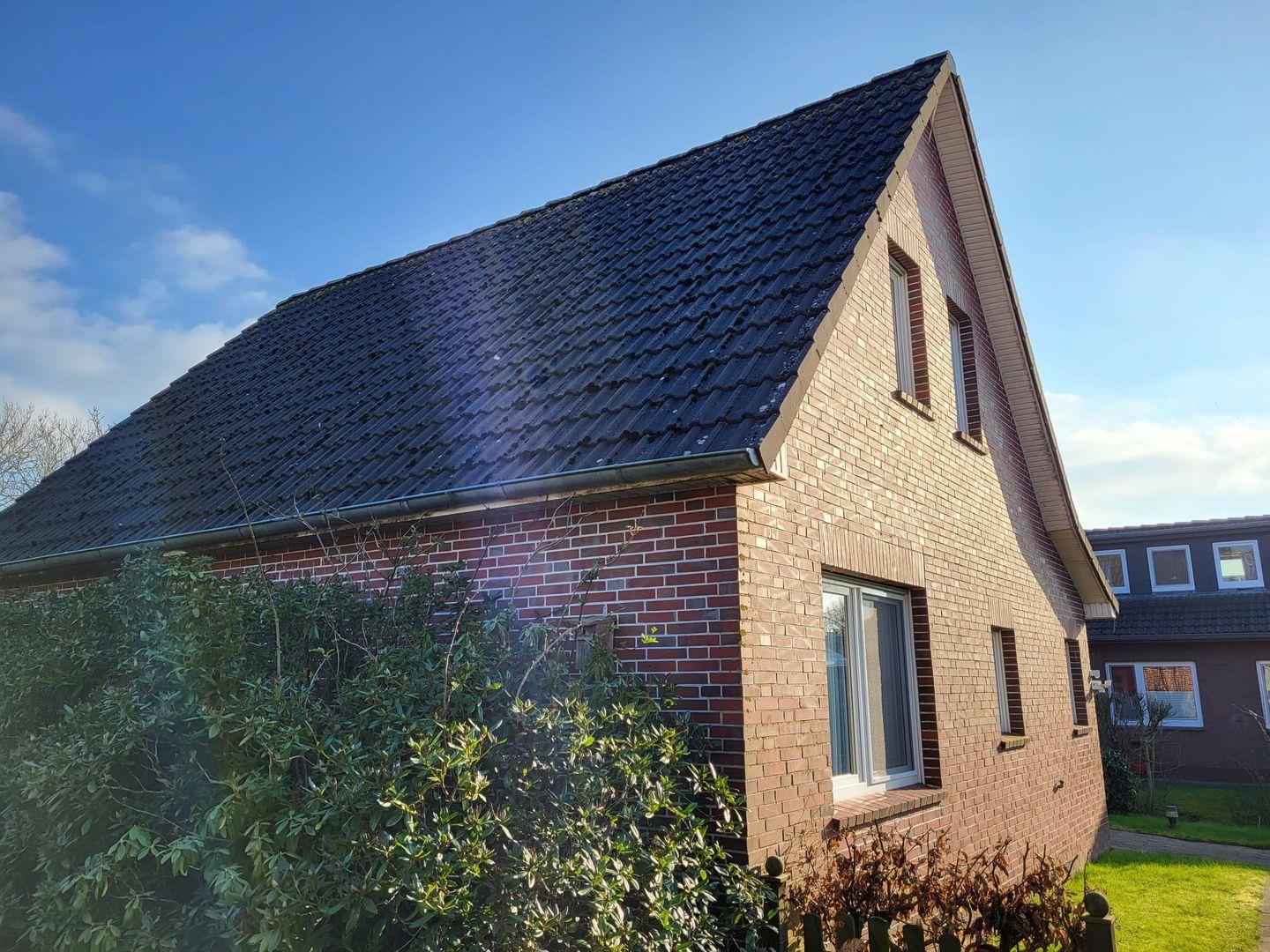 Vom Flur gelangen Sie in den Wohn-Essbereich mit Küche. Der großzügige Raum wirkt hell und freundlich. Die Balkenlage sorgt für Gemütlichkeit und Wärme. Genießen Sie auf dem Ledersofa und den 2 Sesseln gemütliche Abende, z. B. bei einem Fernsehabend mit einem Gläschen Wein. In der Küchenzeile steht alles bereit, um leckere Speisen zu kochen und dann am Esstisch mit der ganzen Familie oder mit Freunden zusammen zu essen. Klönen bei einer Tasse Ostfriesentee ist hier Pflicht. Vom Essbereich gelangen Sie auf die Terrasse, wo Sie die frische Nordseeluft und die Ruhe genießen können. Das Schlafzimmer im EG verfügt über ein Doppelbett und einen Kleiderschrank. Nebenan befindet sich das helle Duschbad. Ein kleiner Abstellraum rundet das Erdgeschoß ab. Die Treppe rauf finden Sie 2 weitere Schlafräume, eines mit Doppelbett und eines mit einem Einzelbett. Wenn Sie hier aus dem Fenster schauen, können Sie die Zwillingsmühlen entdecken. Auf dieser Etage finden Sie auch das zweite Duschbad. Alles Räume verfügen über Außenrollos. WLAN ist verfügbar! Ein Parkplatz gehört zum Haus. Das Ferienhaus Bella liegt sehr ruhig in einer Sackgasse. Es sind nur ca. 5 Gehminuten ins Zentrum.