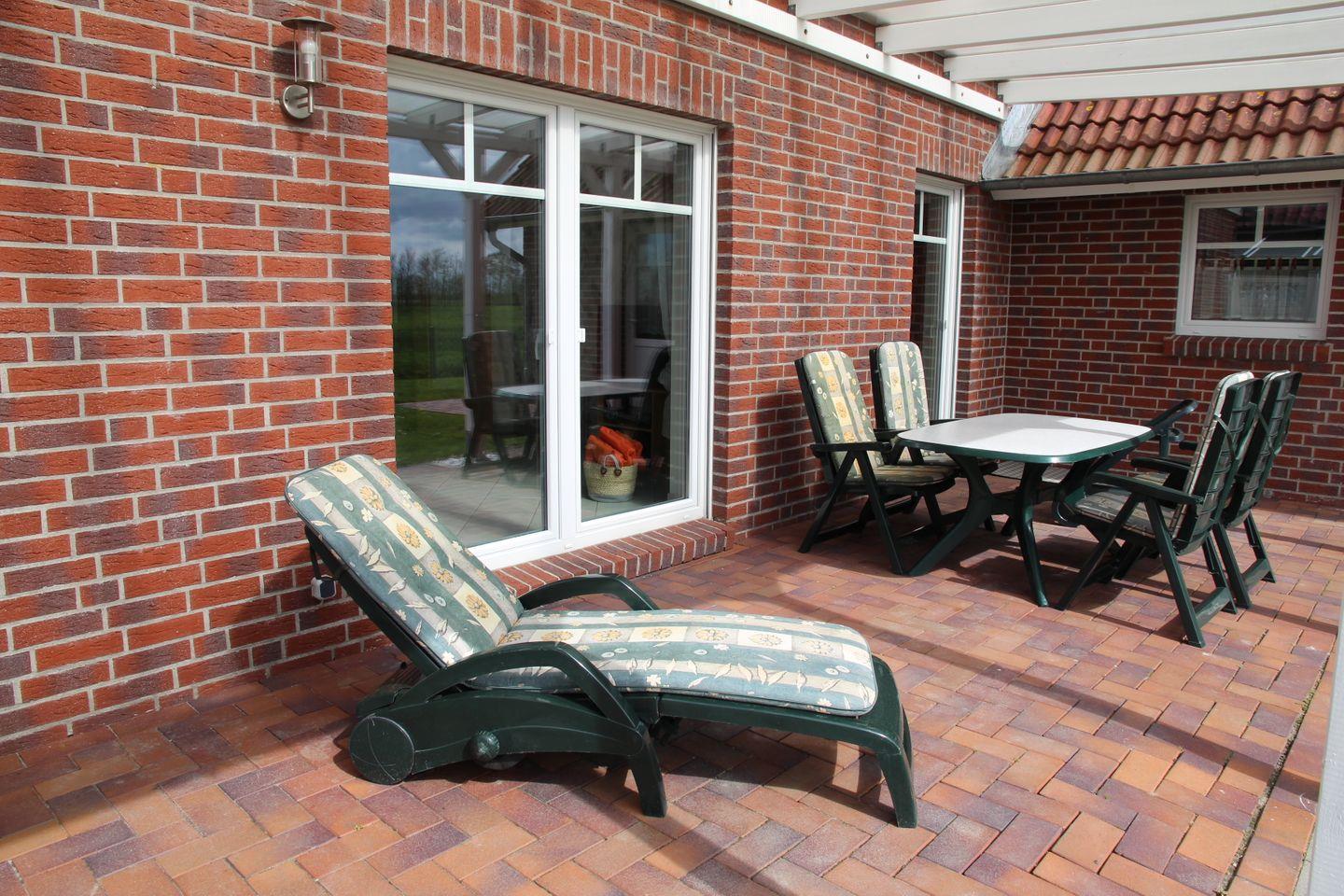 Die Erdgeschoss-Wohnung ist ruhig gelegen am Ortsrand von Greetsiel und bietet einen herrlichen Blick über das weite Land. Über den Flur mit Garderobe erreichen Sie ebenerdig alle Räume der ca. 80 qm großen Ferienwohnung, die im April 2024 nahezu komplett neu eingerichtet wurde.