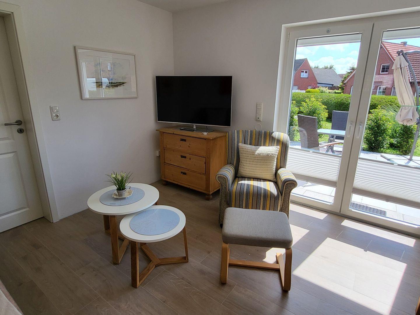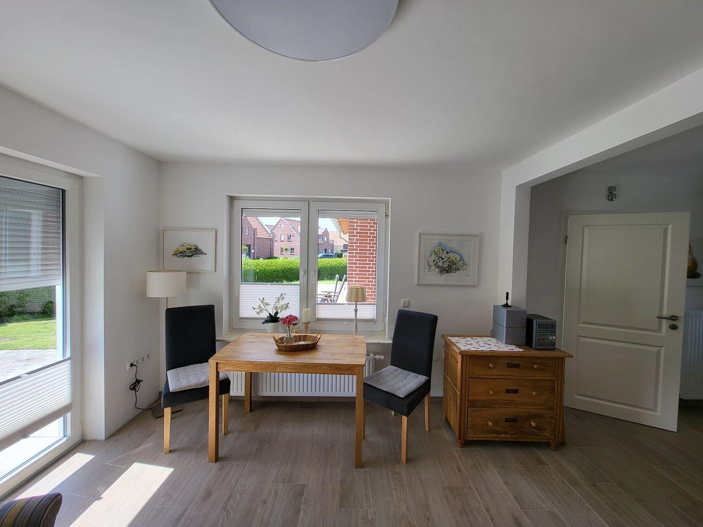 Hervorzuheben ist die Terrasse, die dazu einlädt, die frische Luft und den Blick in den Garten zu genießen. Hier können Sie beim Entspannen die Seele baumeln lassen und sich den frischen Nordseewind um die Nase wehen lassen. Zudem stehen mehrere Parkplätze zur Verfügung. Mitgebrachte Fahrräder haben in der Garage Platz.