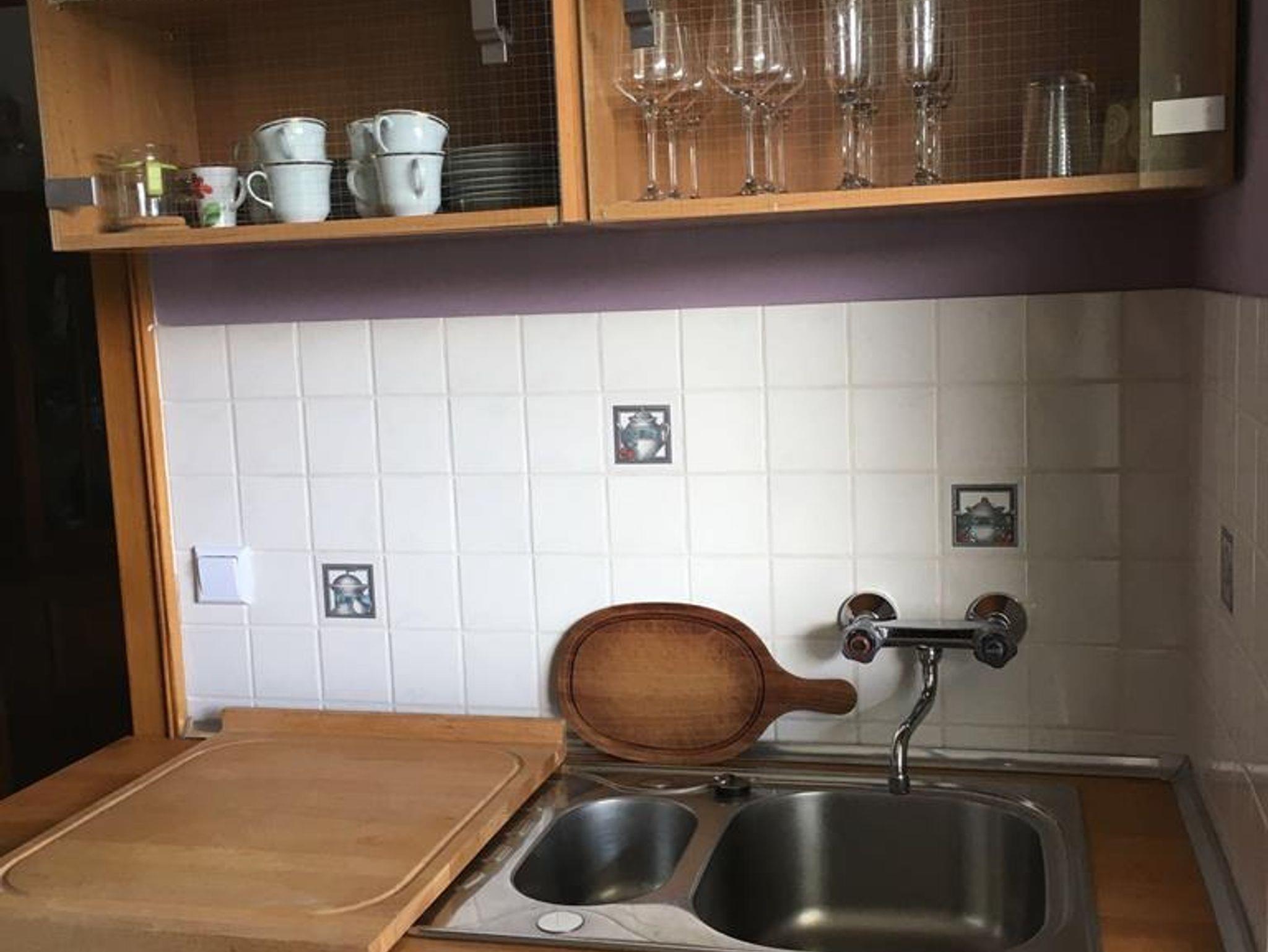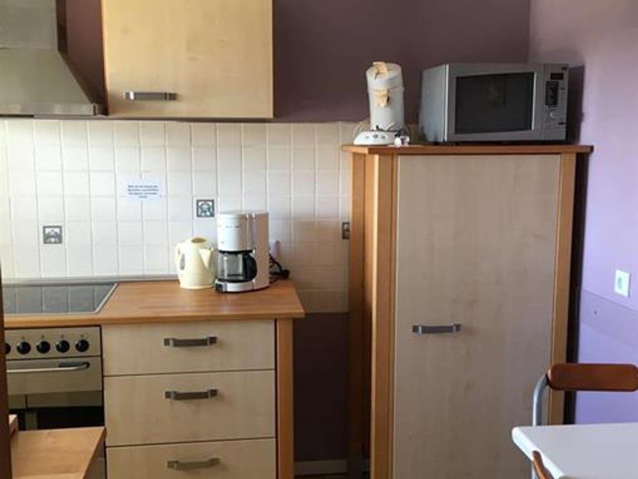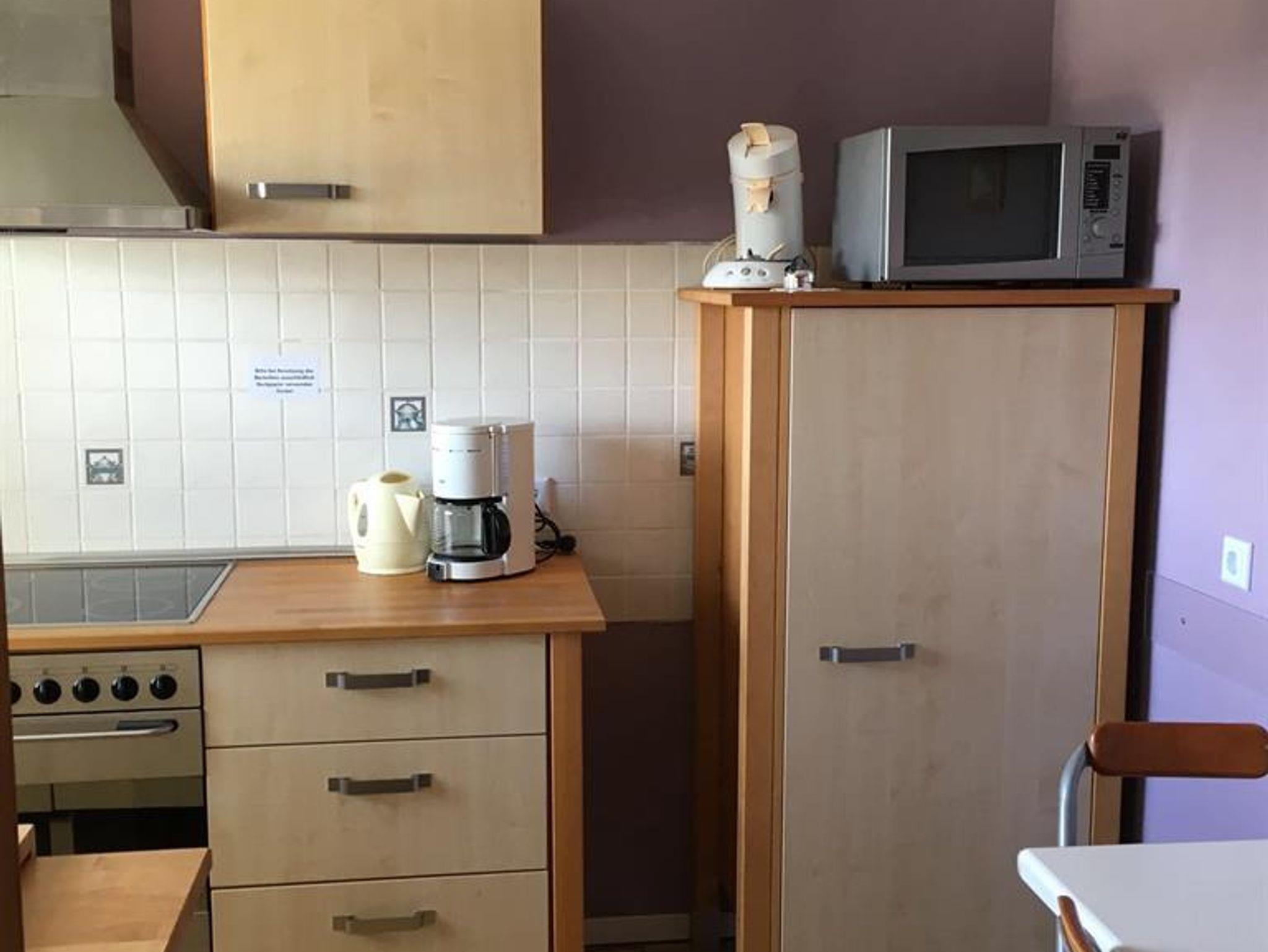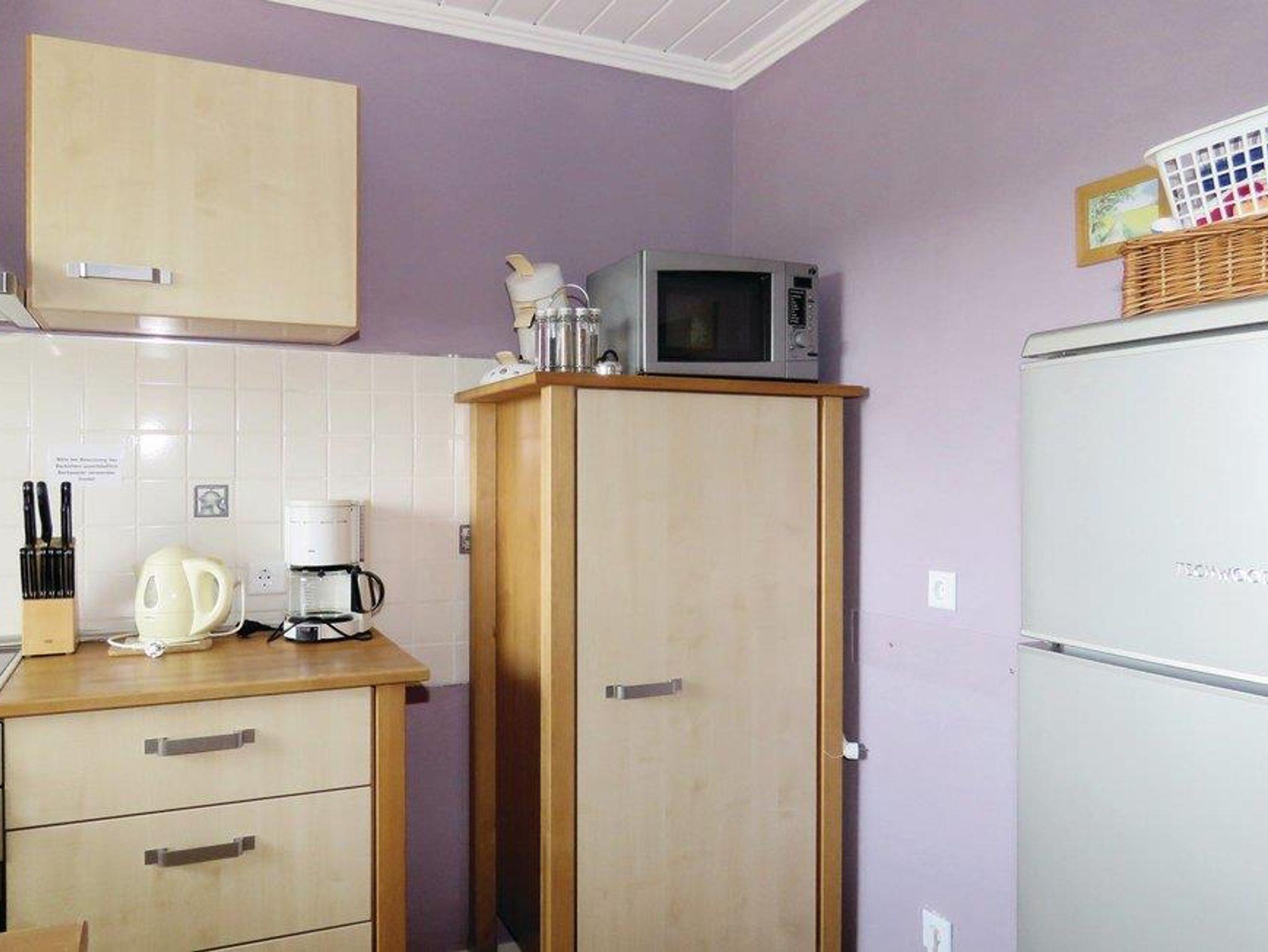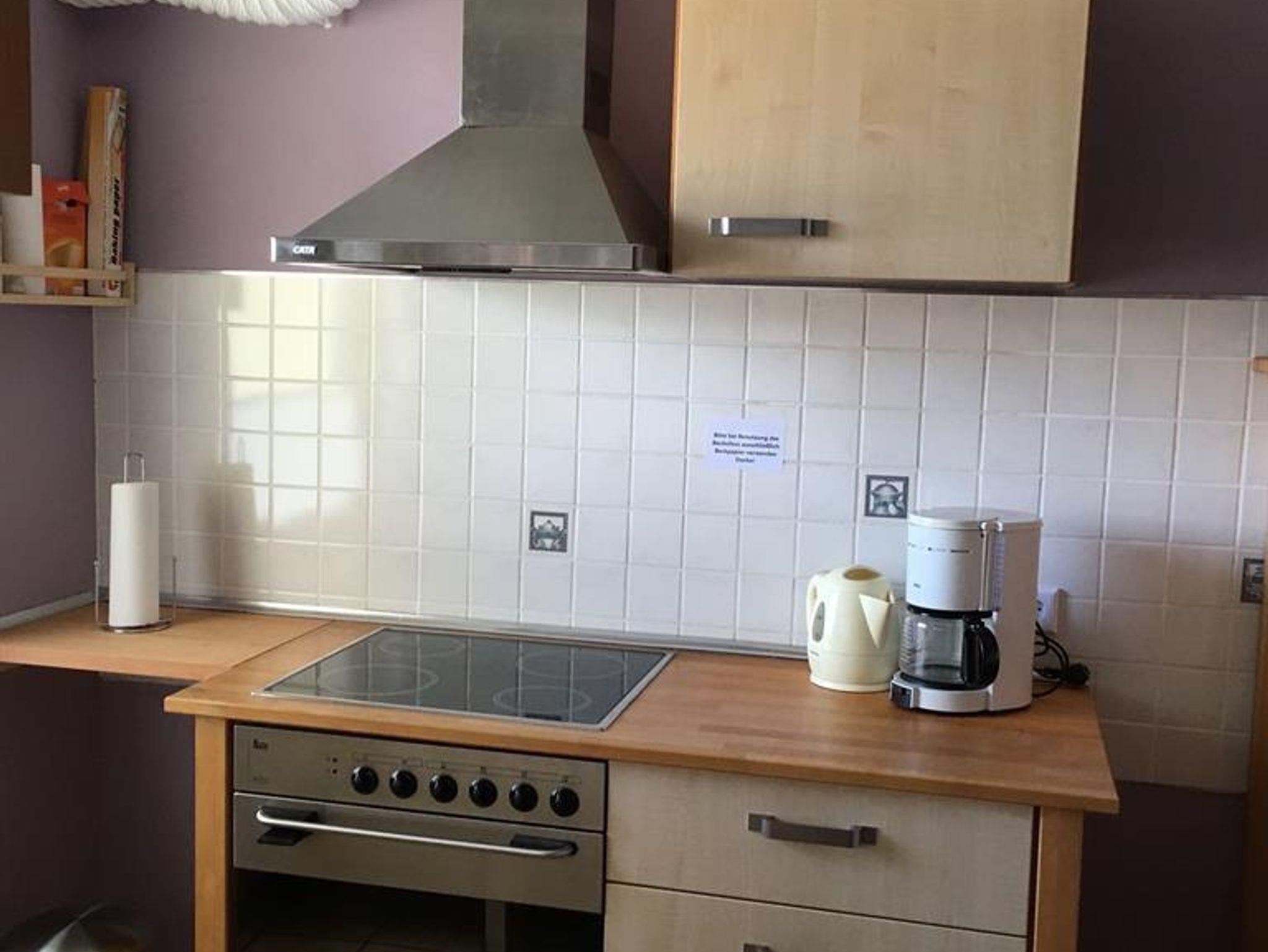 Die Küche ist voll ausgestattet, div. Elektrogeräte wie Mikrowelle, Toaster, Kaffee- und Kaffeepadmaschine, Wasserkocher, Eierkocher, Backofen, Herd und Kühlschrank.
