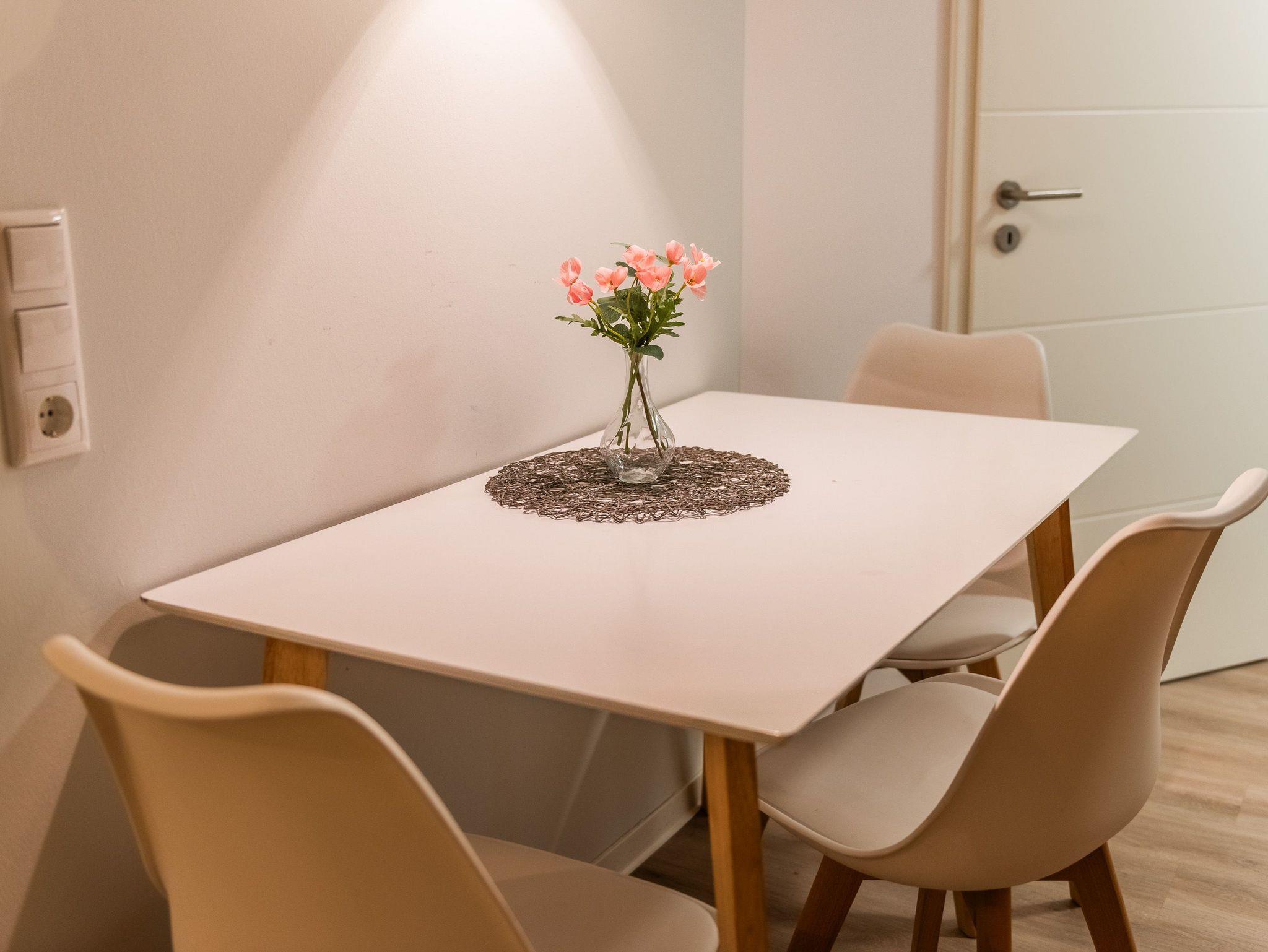 Für gemütliche Abende nach einer ausgiebigen Erkundigungstour befindet sich im Außenbereich ein Gartentisch mit 4 Stühlen sowie einem Grill.