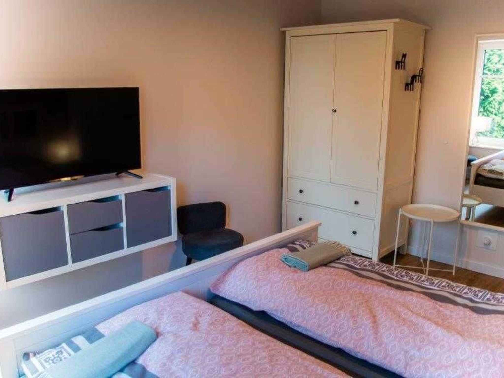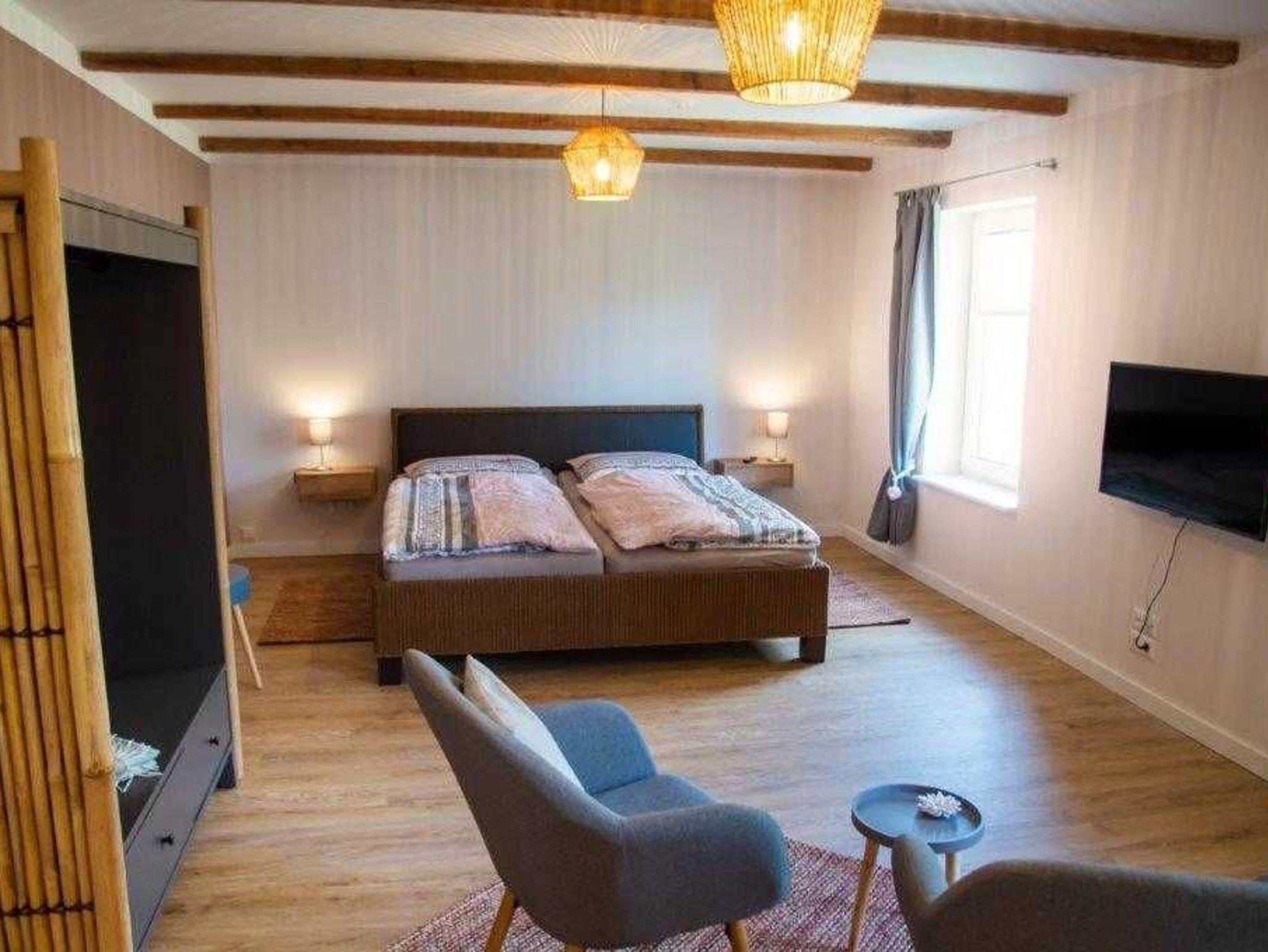 Eines der 3 Schlafräume ist mit einem extra großem Bett (2,10m Länge) ausgestattet.