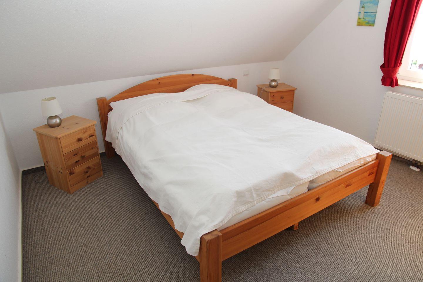 Eines der (Eltern-) Schlafzimmer (Doppelbett) ist auch im EG untergebracht und somit auch für die Mitnahme der Großeltern interessant.