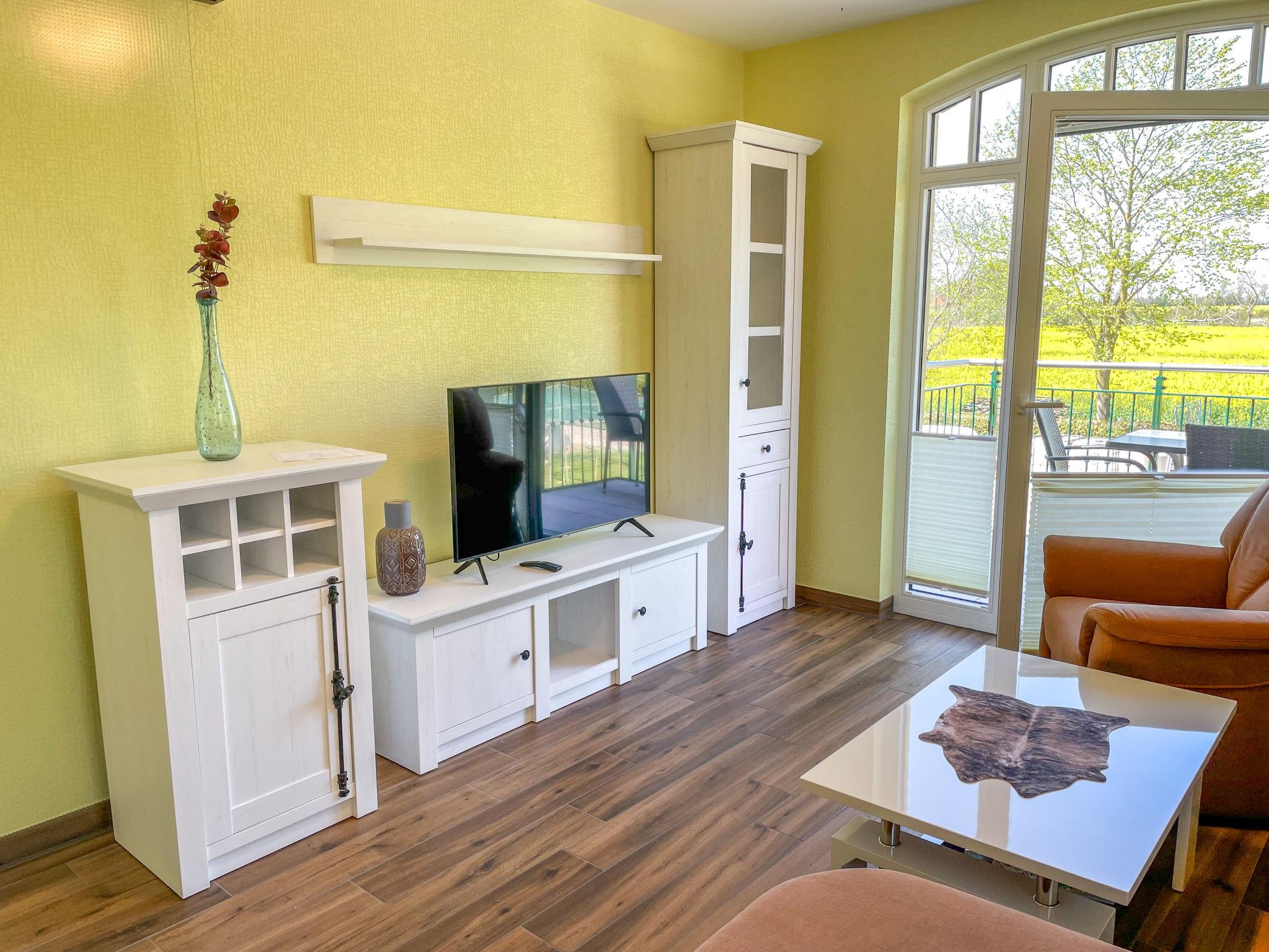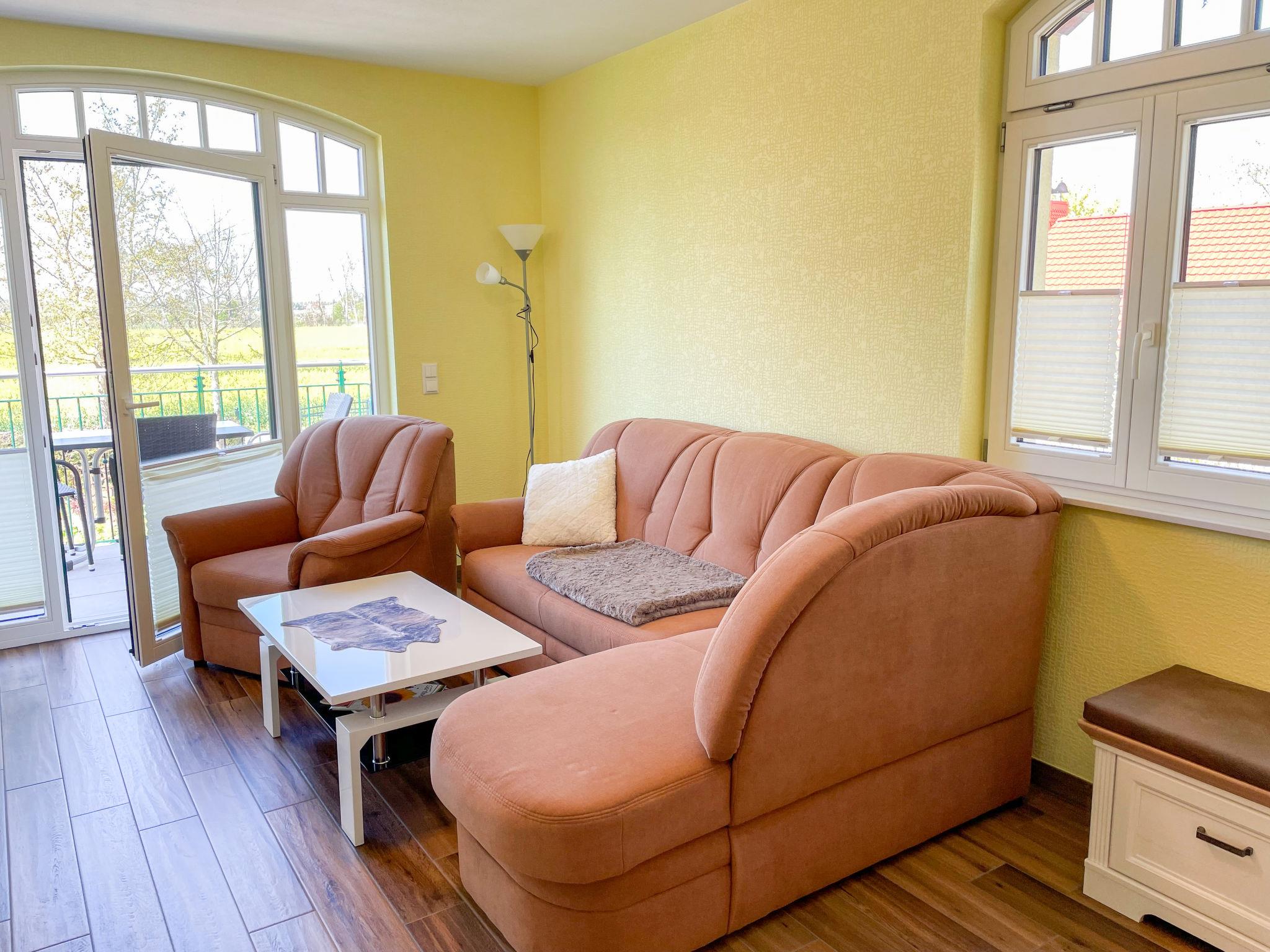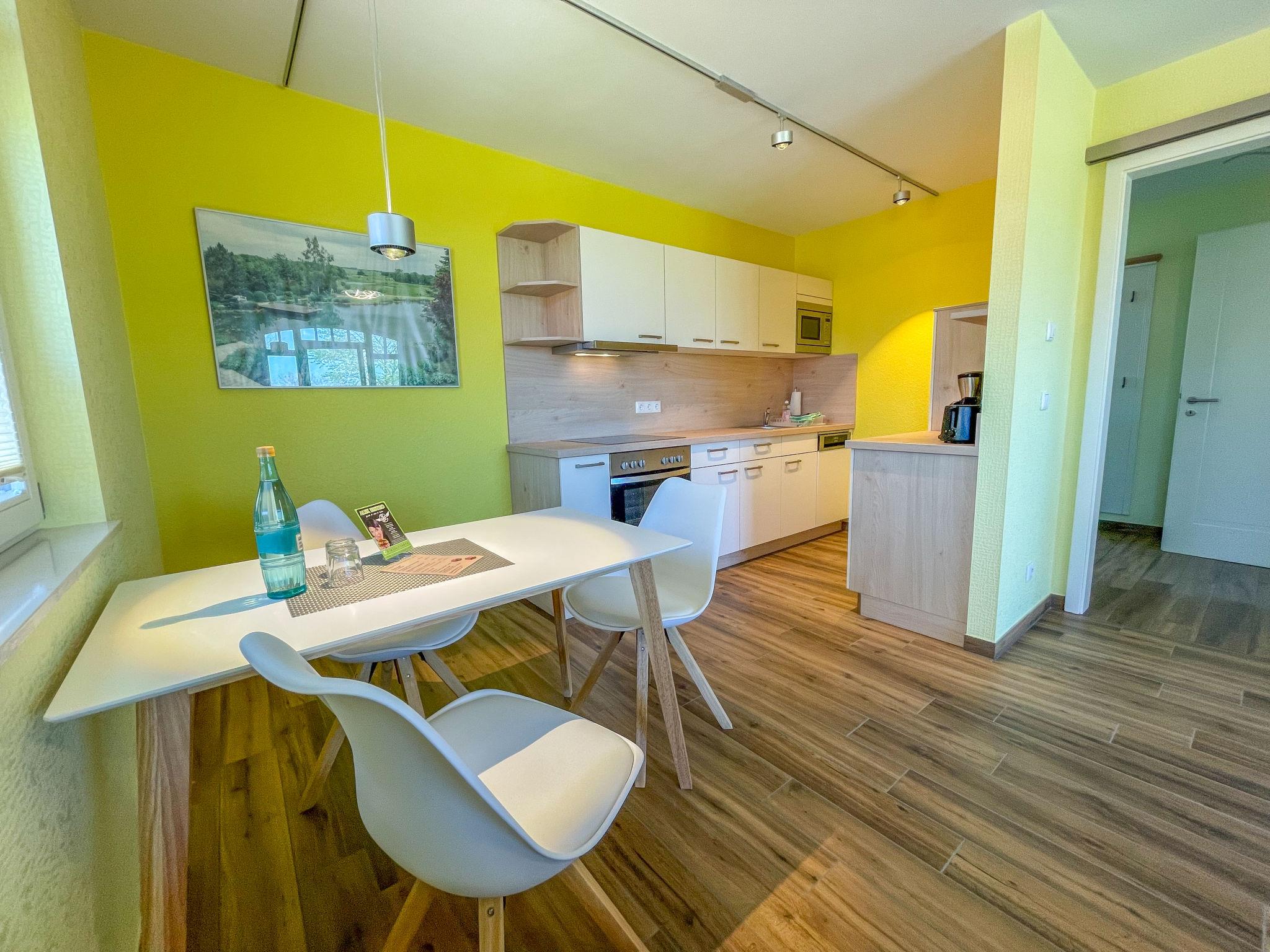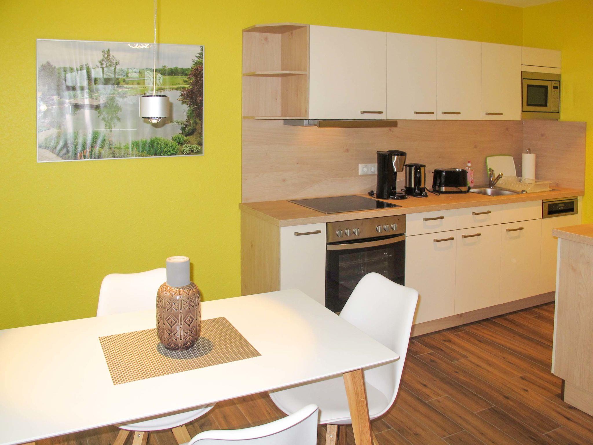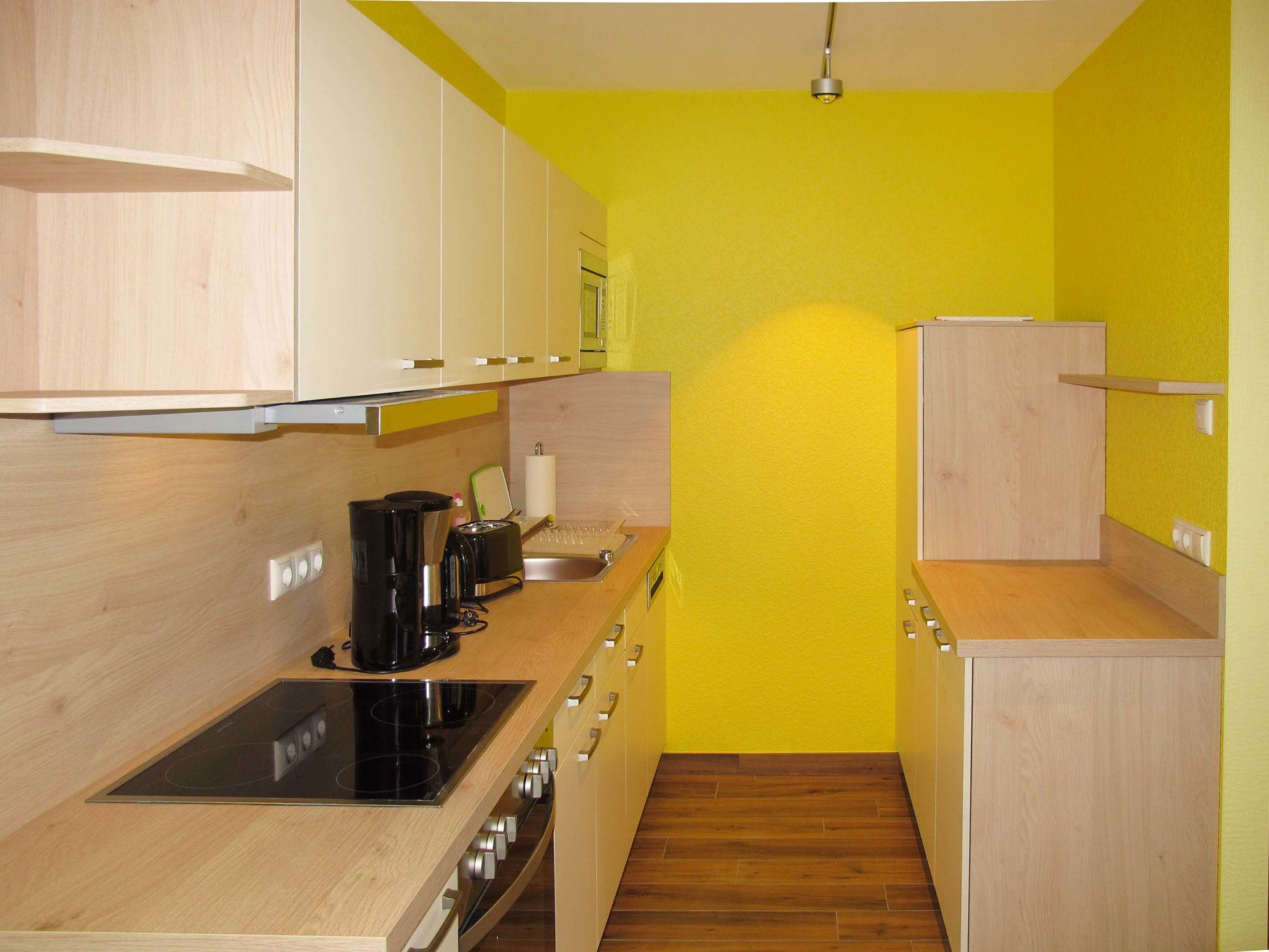 "Tulpe", 2-room apartment 50 m2, on the upper floor. Object suitable for 2 adults + 1 child. Modern and tasteful furnishings: living/sleeping room with 1 sofabed, dining table and satellite TV (flat screen), radio. Exit to the balcony. 1 double bedroom. Kitchenette (dishwasher, 4 ceramic glass hob hotplates, toaster, kettle, microwave, freezer, electric coffee machine). Shower/WC. Underfloor heating. Balcony 5 m2. Balcony furniture, barbecue (portable). Facilities: Internet (WiFi, free). Please note: non-smokers only. 1 small pet/ dog allowed. Smoke alarm.