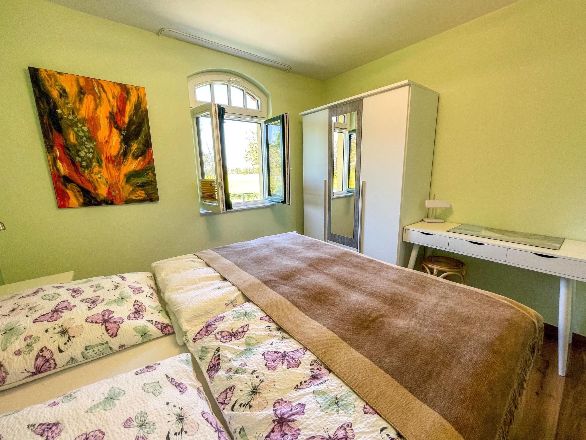 Modern, comfortable apartment block "Altherscher Hof", 2 storeys, renovated in 2021, surrounded by trees, meadows and fields. 4 apartments in the residence. 14 km from the centre of Grimmen, on the outskirts, 40 km from the centre of Stralsund, 65 km from the centre of Rostock, in a quiet position, 45 km from the sea, 1 km from the river, 32 km of lagoon, in a cul-de-sac, in the countryside. For shared use: park 17 ha with flowers and trees, meadow, beautiful garden to relax, courtyard, natural pond. In the house: washing machine (for shared use, extra). 2 km long bumpy motor access to the house. Parking on the premises. Supermarket 12 km, restaurant 12 km, bus stop "Tribsees" 10 km, sandy beach "Dierhagen (Fischland)" 45 km, outdoor swimming pool 1 km. Nearby attractions: Ozeaneum Stralsund 45 km, Halbinsel Fischland/Darß/Zingst 45 km, Insel Rügen 50 km, Insel Usedom 90 km, Trebeltal 1 km. Please note: car recommended. Suitable for families. On the estate animal husbandry. Local sale of farm products. Loading and unloading of baggage is possible at the holiday house. The owner lives on the same property. Additional accommodations can be booked. Property ref. DE9220.101.1 is situated on the same property.