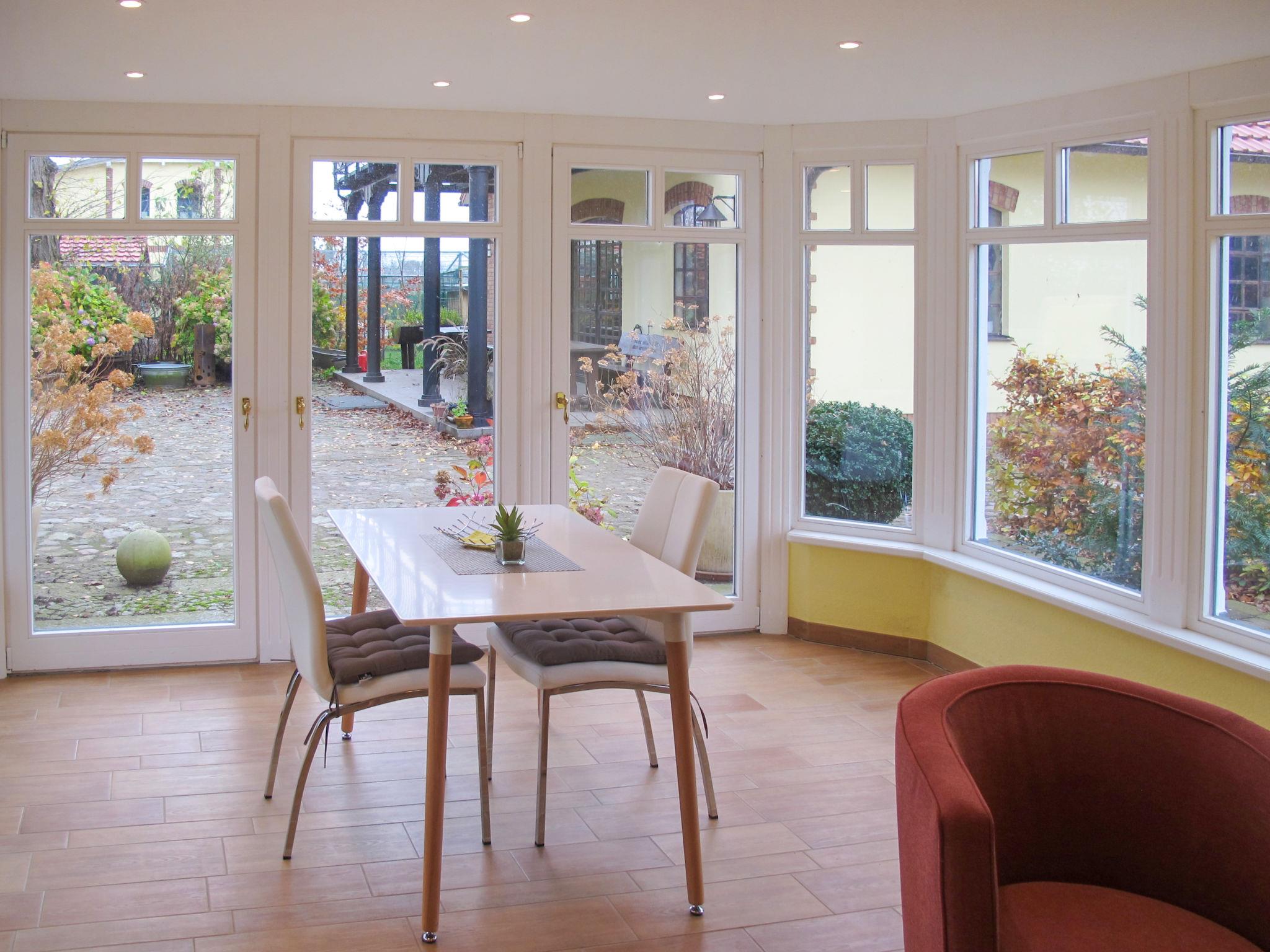 2-room house 55 m2 on 3 levels. Object suitable for 2 adults + 2 children. Modern and cosy furnishings: living/sleeping room with winter garden with 1 double sofabed (130 cm, length 180 cm), dining table and satellite TV (flat screen), radio. Exit to the terrace. Kitchenette (2 ceramic glass hob hotplates, toaster, kettle, microwave, electric coffee machine). Shower/WC. Upper floor: (steep stair), 1 double bedroom. Top floor: (steep stair) open, with sloping ceilings, ceiling height 110 cm with 2 sleeping facilities (75 cm, length 200 cm). Electric heating. Terrace 10 m2. Terrace furniture, barbecue (portable). Facilities: Internet (WiFi, free). Please note: non-smoking house. 1 small pet/ dog allowed. Smoke alarm. Please note: allowed only 2 adults + 2 children. Bed layout is flexible. There are more sleeping options available than the maximum number of people allowed which may, however, not be exceeded.