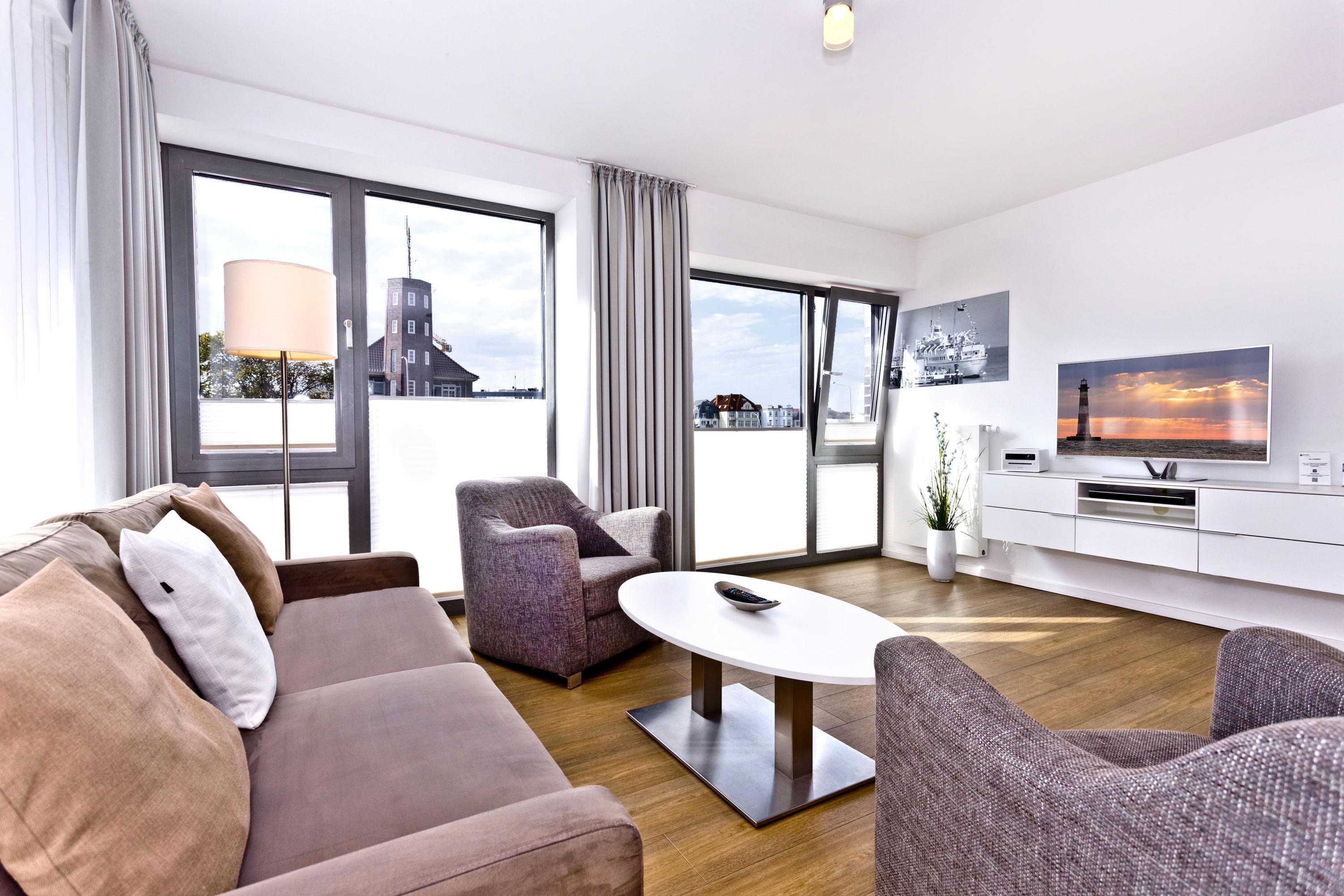 Lichtdurchflutete 2-Raum-Ferienwohnung in Südlage und Seesicht. Großer Balkon mit Seesicht (ost/süd). Vollständige Küchenzeile mit Mikrow., Backo., Geschirrspüler etc., SAT-TV, Blue-Ray-DVD, CD-Kompaktanlage, USB-Steckdosen, kostenloses W-Lan-Internet, separates Schlafzimmer mit Außenjalousien, allergikerfreundlich, ebenerdige Dusche/WC, Föhn, freie Saunanutzung, reservierter Außenstellplatz am Haus, keine Haustiere und natürlich Nichtraucher.