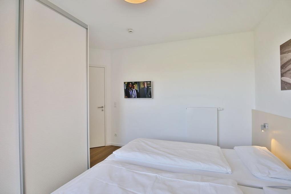 Luxus Seesicht-3-Raum-Wohnung in der 3.Etage mit großem Balkon zur Wasserseite (west). Die vollständige Küchenzeile mit Mikrow., Back., Geschirrsp. etc. garantiert höchsten Komfort. 2x SAT-TV, Blue-Ray-DVD, Kompaktanlage, kostenloses W-Lan, 2 separate Schlafzimmer mit hochwertigen Doppelbetten (alle mit Außenjalousien), allergikerfreundlich, ebenerdige Dusche/WC, Föhn, Pkw-Stellplatz auf dem Außengelände am Haus, keine Haustiere und natürlich Nichtraucher.